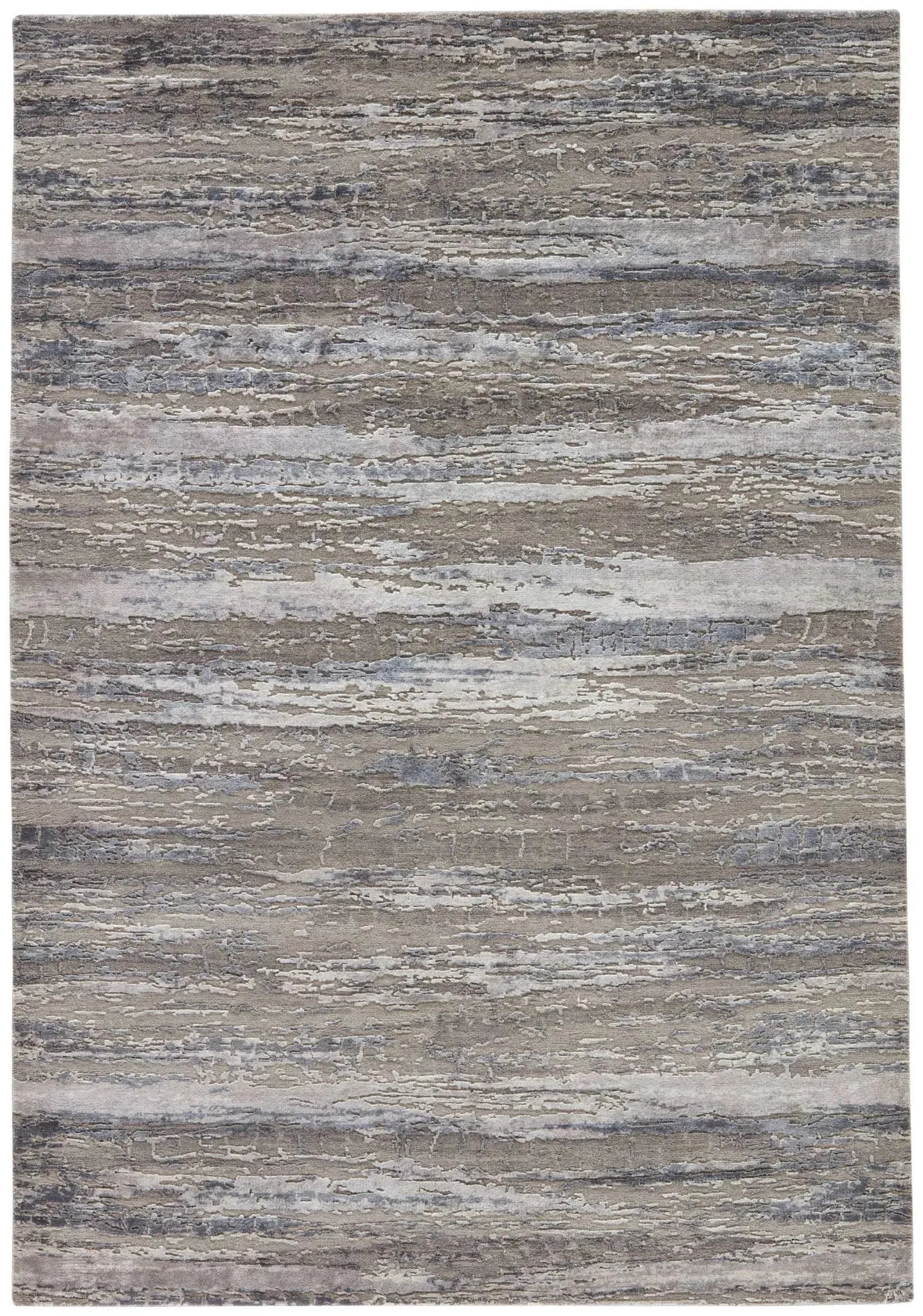 Hand-knotted of hand-carded wool and lustrous viscose, this area rug's organic-inspired pattern captivates with abstract intrigue. Striations of gray and silver form an neutral palette, perfect for modern homes.