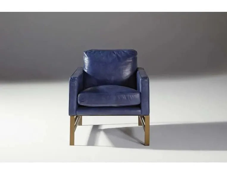The Chazzie Armchair in Ocean Blue and Truffle Brown merges timeless sophistication with modern charm. Upholstered in rich ocean-blue leather, the chair offers a sleek, supple texture that pairs beautifully with its sturdy metal frame. The generously padded seat and back cushions ensure superior comfort, making it an ideal addition to your living room or study for both style and relaxation.