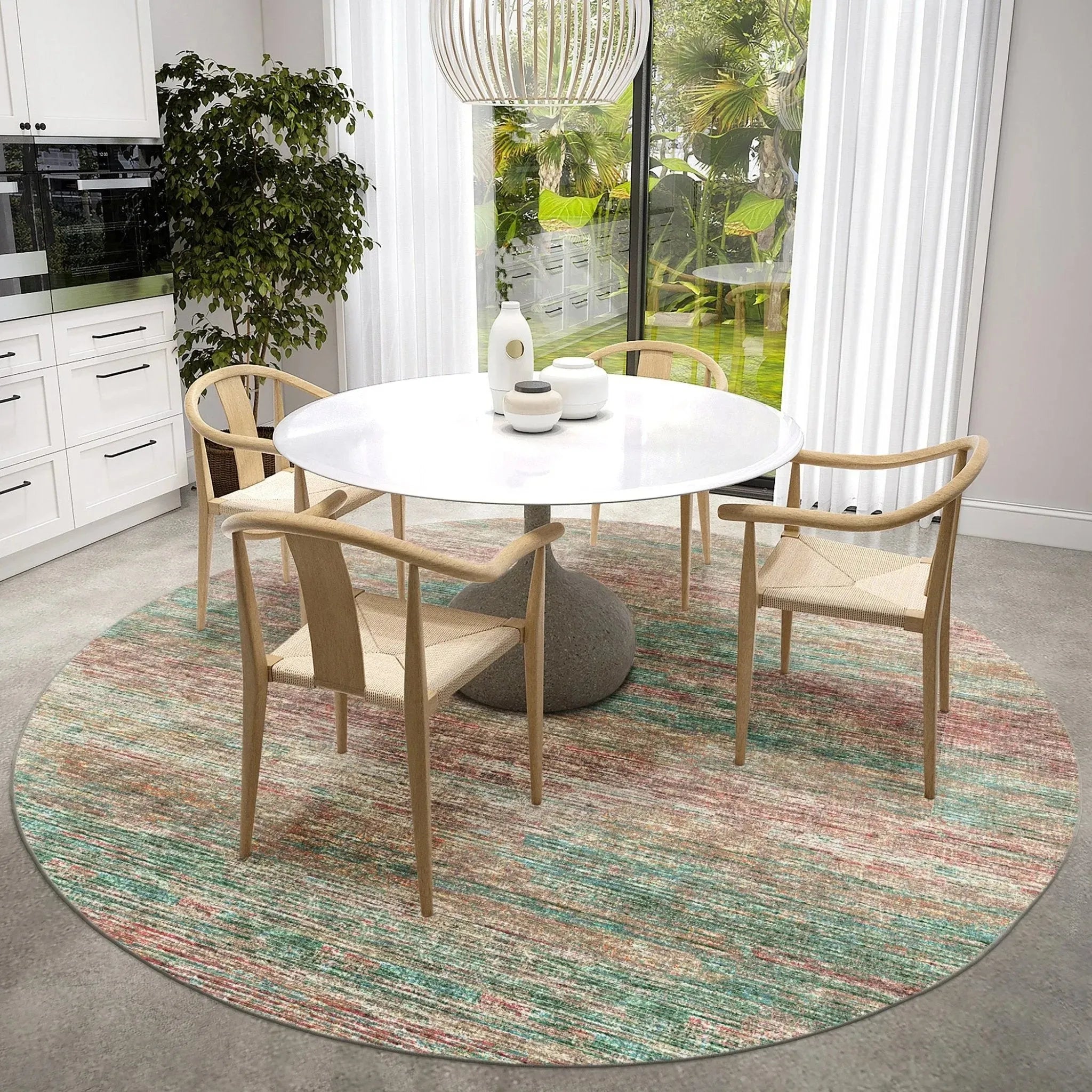 This fresh multi-tonal active solid rug will anchor your furnishings and allow your decorator spirit to soar. Crafted in the USA of a heavy polyester pile with a non-skid backing that is perfect for indoor or outdoor use.