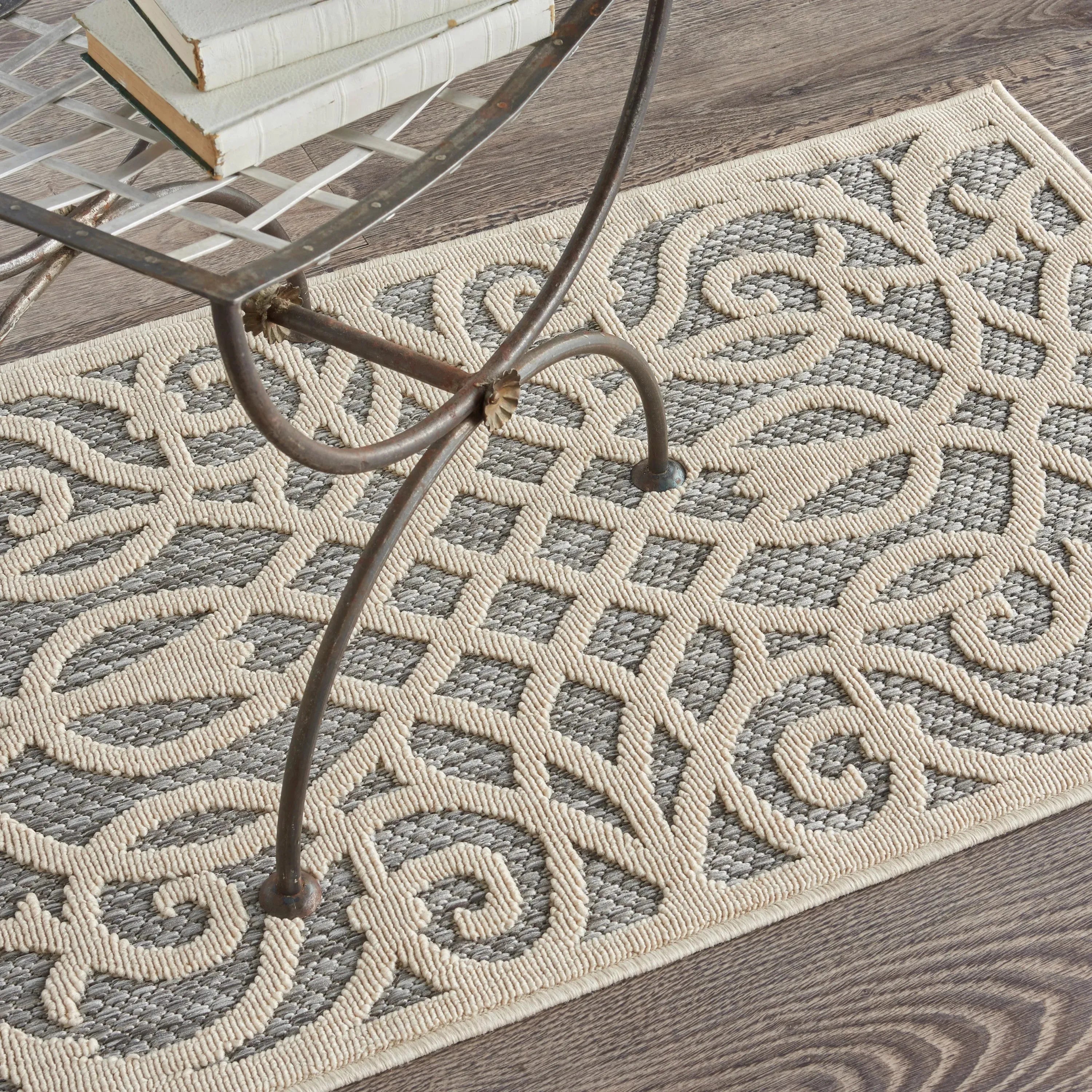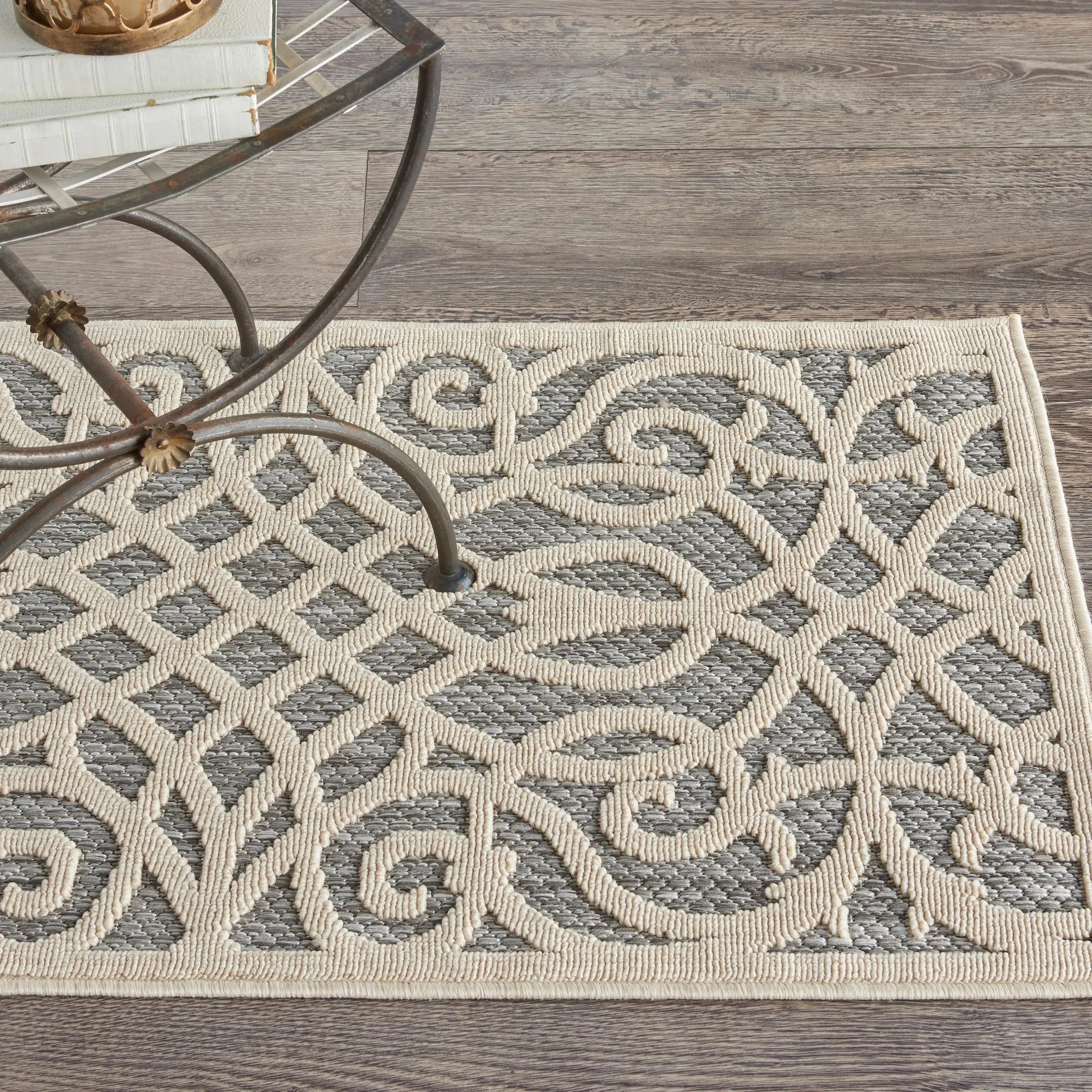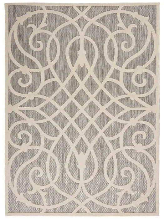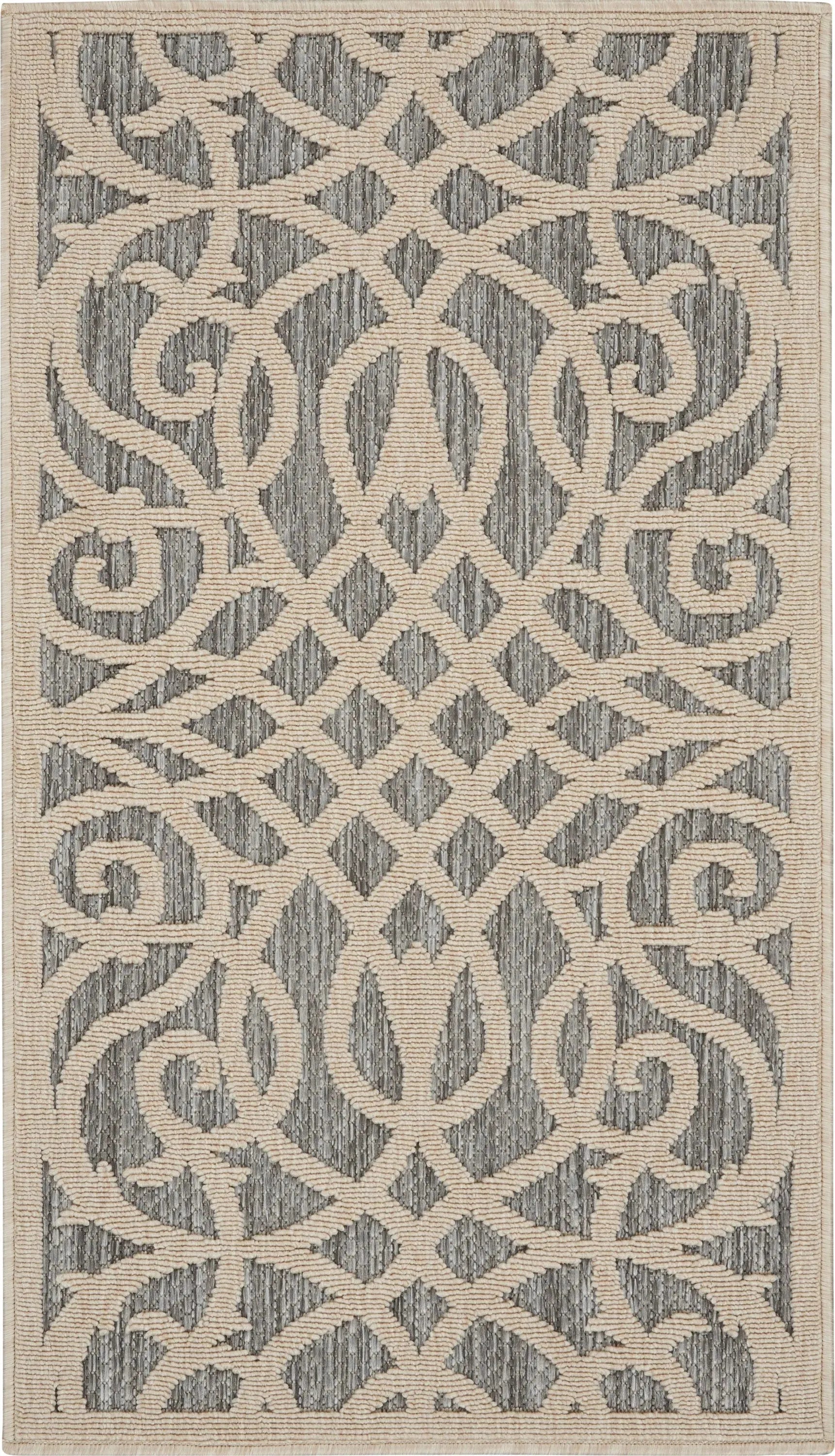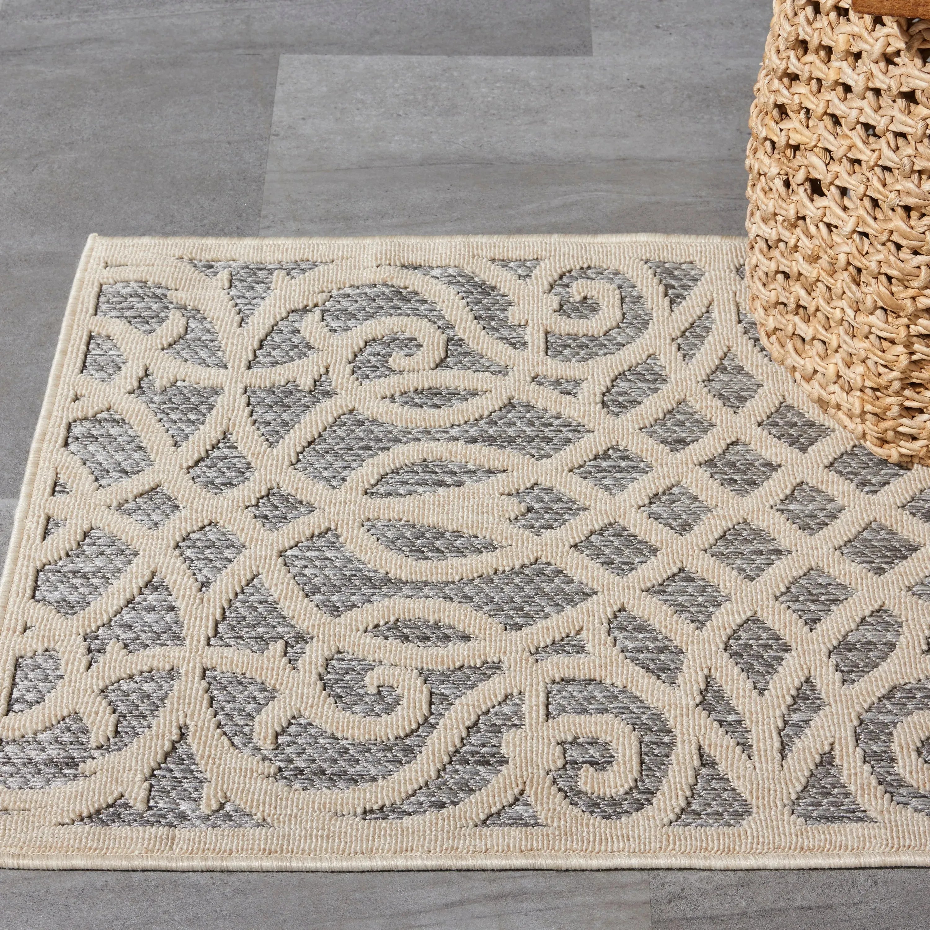 Can a rug sturdy enough for both indoor and outdoor use also be chic and attractive? For sure, if it's from the Cozumel Collection. These durable and fade-resistant area rugs are ideal for the casual lifestyle and work just as well in covered outdoor locations such as patio or porch as they do in your living room, family room or other favorite spot. Distinguished by their high-low loop pile, Cozumel area rugs take a visual cue from hand-carved rugs but are easily affordable and designed to withstand wear. This contemporary collection ranges from linear and geometric to sprightly florals and all enhanced by dimensional pile in today's most coveted neutral tones. Decorating is easy (and fun!) with the casual chic of textural Cozumel, power-loomed in modern poly-fibers.