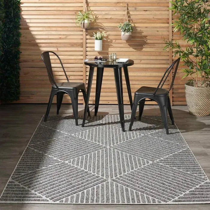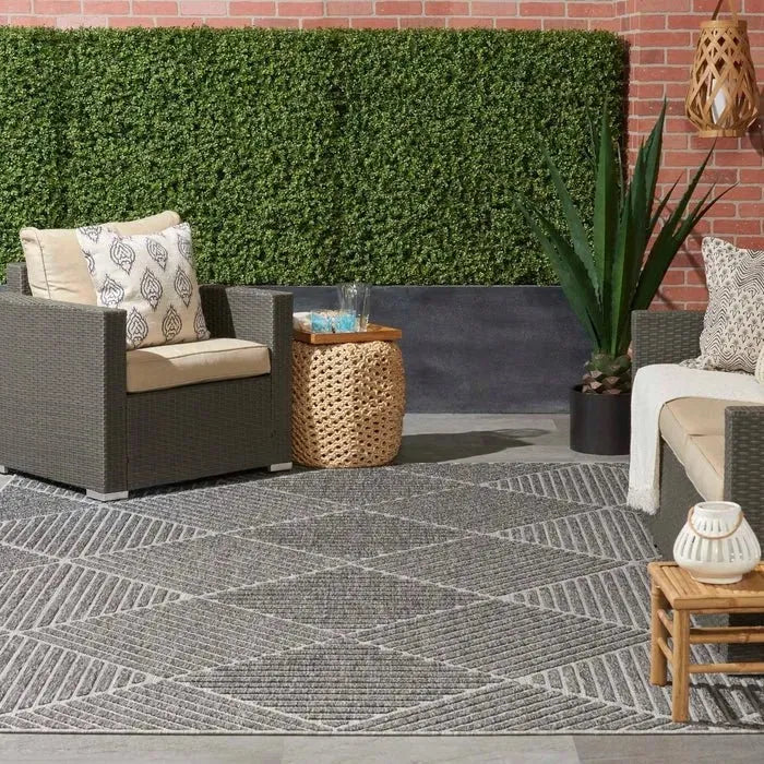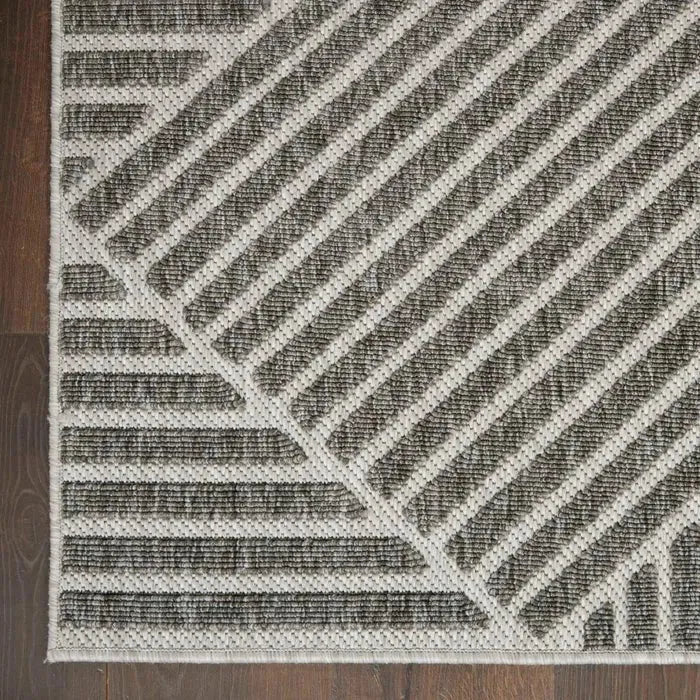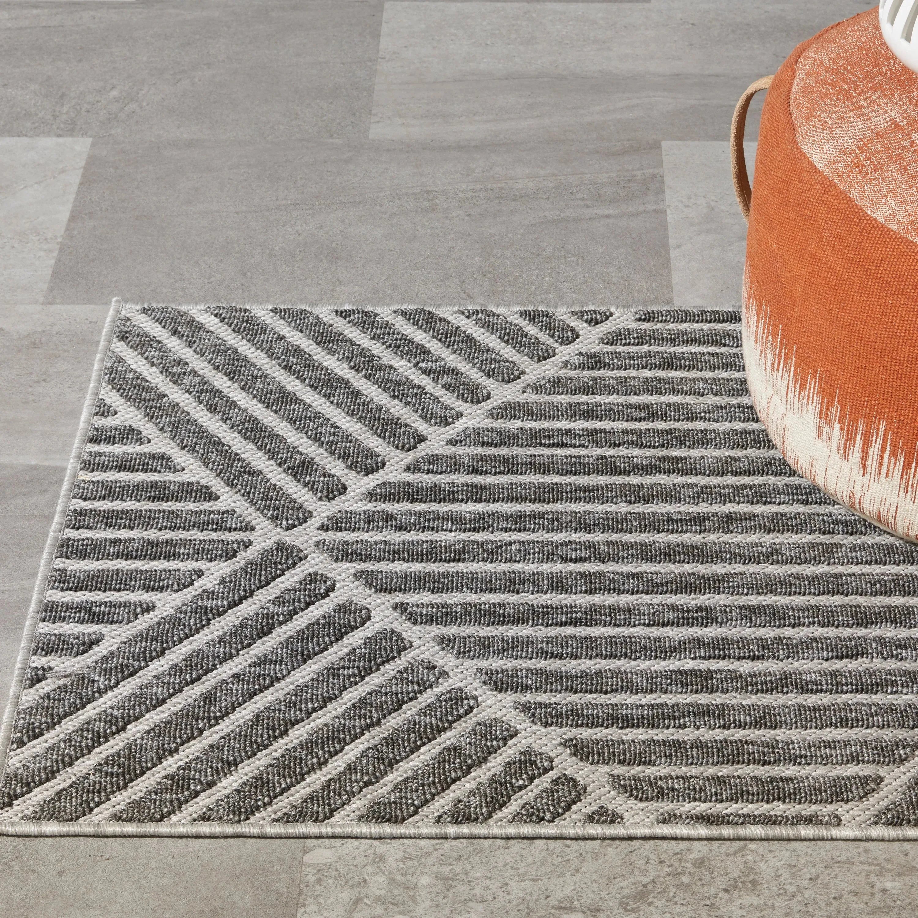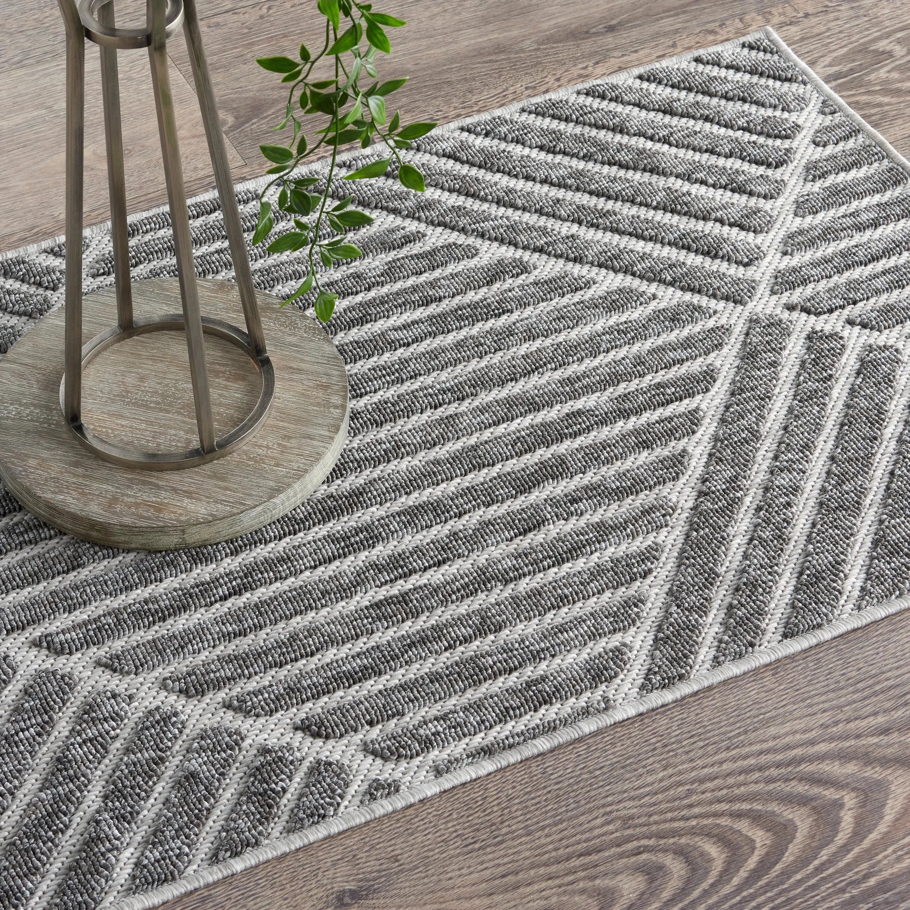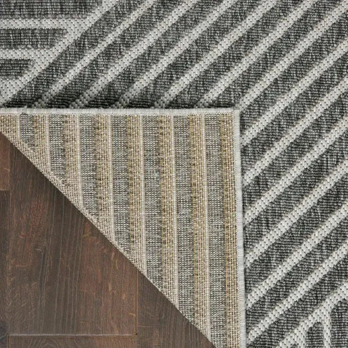 Can a rug sturdy enough for both indoor and outdoor use also be chic and attractive? For sure, if it's from the Cozumel Collection. These durable and fade-resistant area rugs are ideal for the casual lifestyle and work just as well in covered outdoor locations such as patio or porch as they do in your living room, family room or other favorite spot. Distinguished by their high-low loop pile, Cozumel area rugs take a visual cue from hand-carved rugs but are easily affordable and designed to withstand wear. This contemporary collection ranges from linear and geometric to sprightly florals and all enhanced by dimensional pile in today's most coveted neutral tones. Decorating is easy (and fun!) with the casual chic of textural Cozumel, power-loomed in modern poly-fibers.
