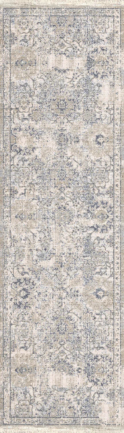Dharma rugs showcase a sophisticated blend of subtle blue tones woven into a neutral base, offering an elegant and high-fashion aesthetic that effortlessly elevates the visual appeal of any living space. Traditional and abstract designs seamlessly come together in Dharma, enhanced by a slight distressed look. This combination adds a layer of versatility, creating a rug that complements various interior styles with a nuanced and stylish touch. Machine-made in Turkey using space-dyed polyester, Dharma rugs strike a balance between affordability and sophistication. The space-dyed polyester construction ensures durability, making these rugs a practical yet stylish choice for enhancing the overall ambiance of your home.