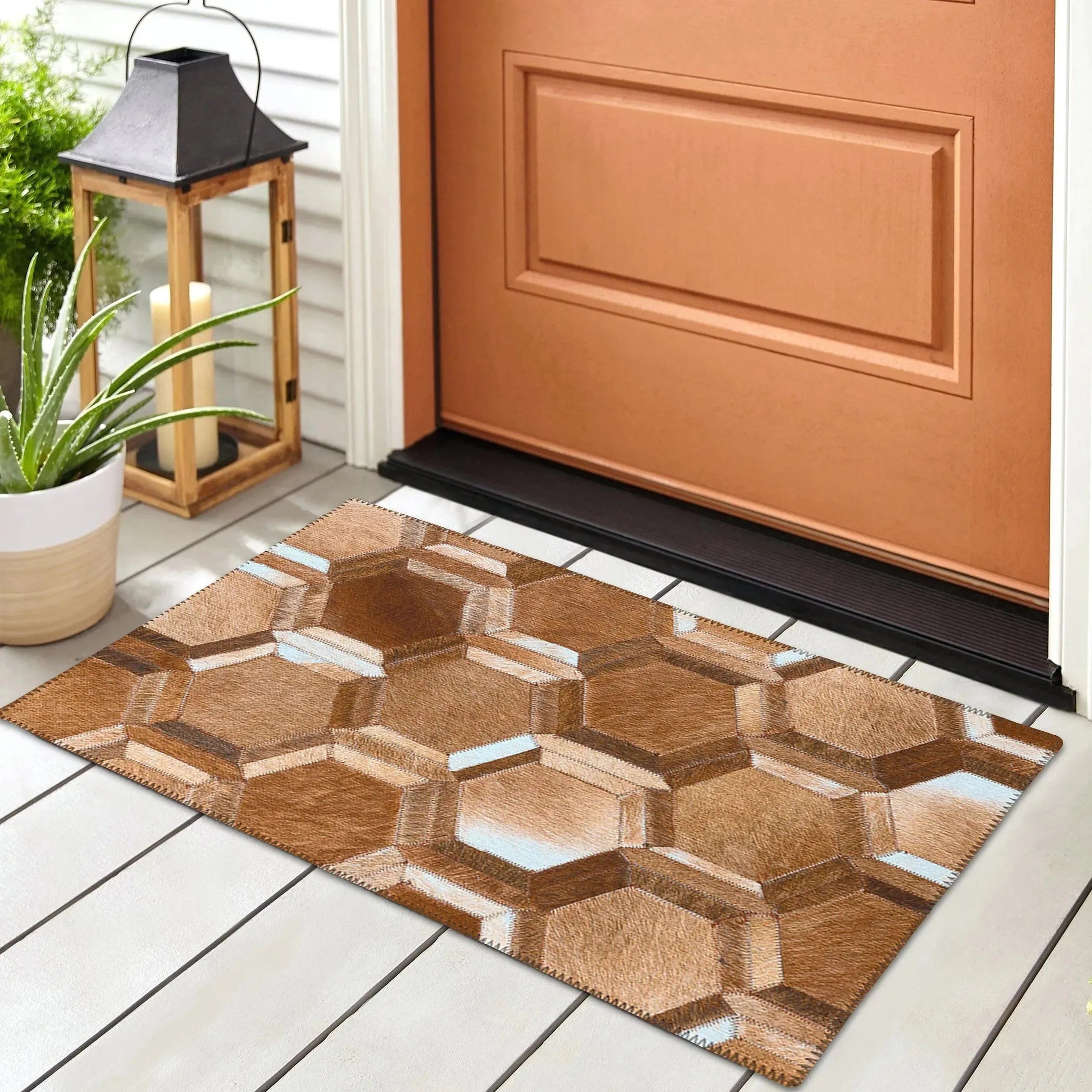 Durango is a faux hide patchwork collection. The details on these faux hide rugs look so real you will wow your guests. This stylish rug features neutral colors with gradient movement. Featuring an ultra-soft and ultra thin pile, each rug is made with 100% polyester pile complete with a non-skid backing. Crafted in the USA using Foreign & Domestic materials and US labor. They are UV Stabilized for indoor and cover outdoor spaces.