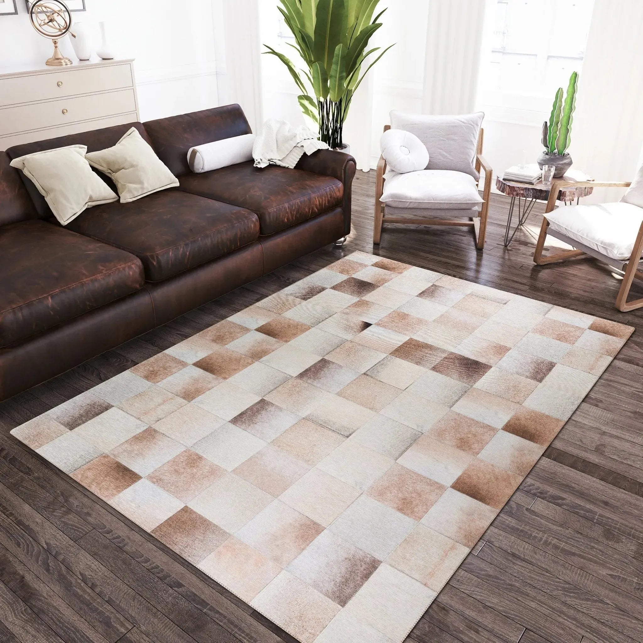 Durango is a faux hide patchwork collection. The details on these faux hide rugs look so real you will wow your guests. This stylish rug features neutral colors with gradient movement. Featuring an ultra-soft and ultra thin pile, each rug is made with 100% polyester pile complete with a non-skid backing. Crafted in the USA using Foreign & Domestic materials and US labor. They are UV Stabilized for indoor and cover outdoor spaces.