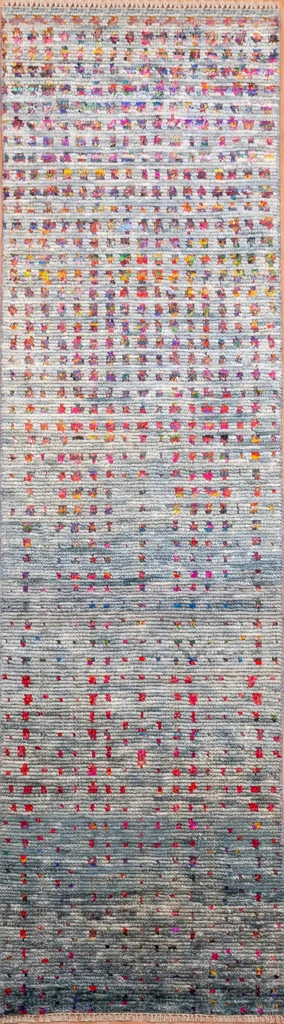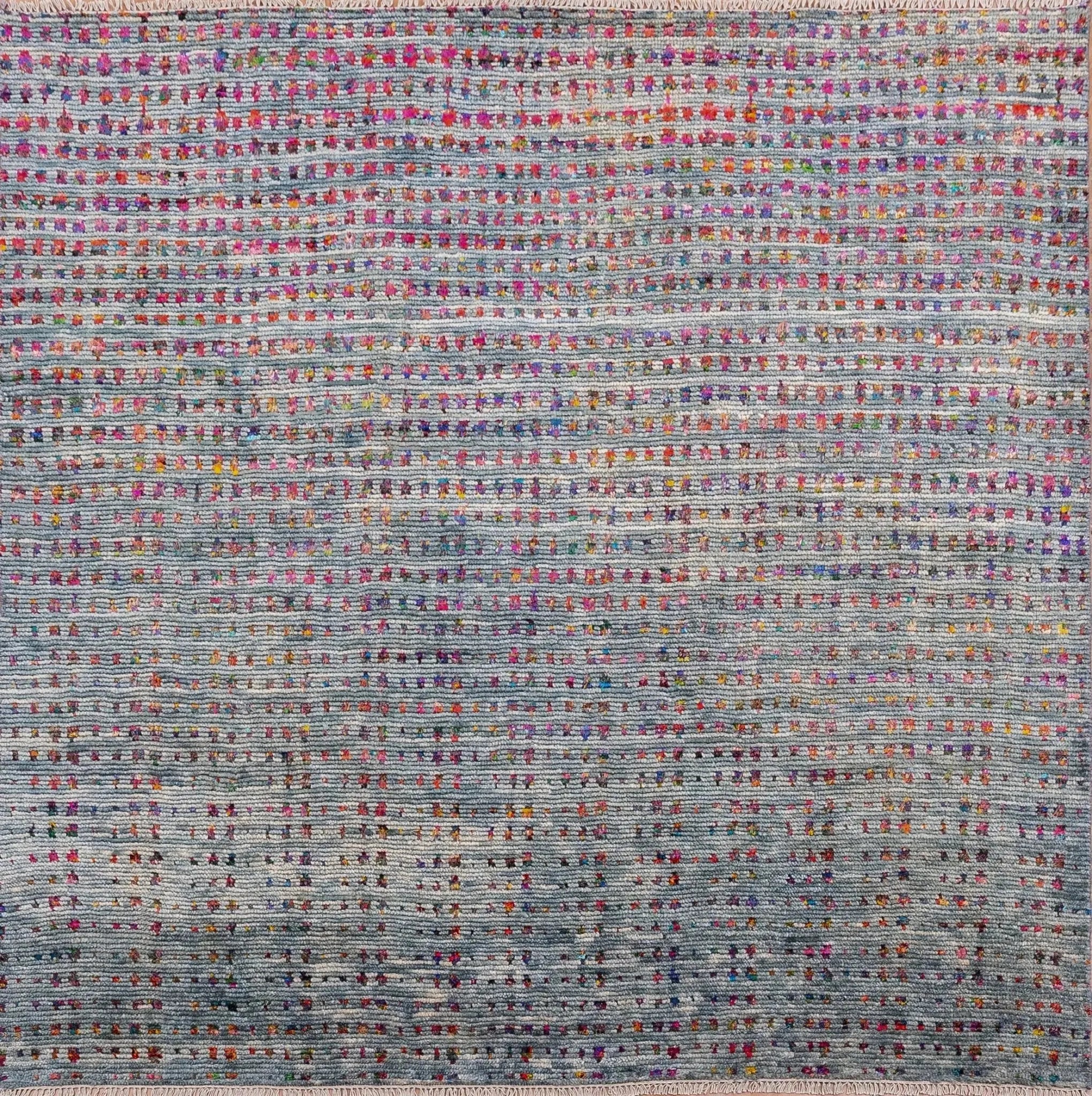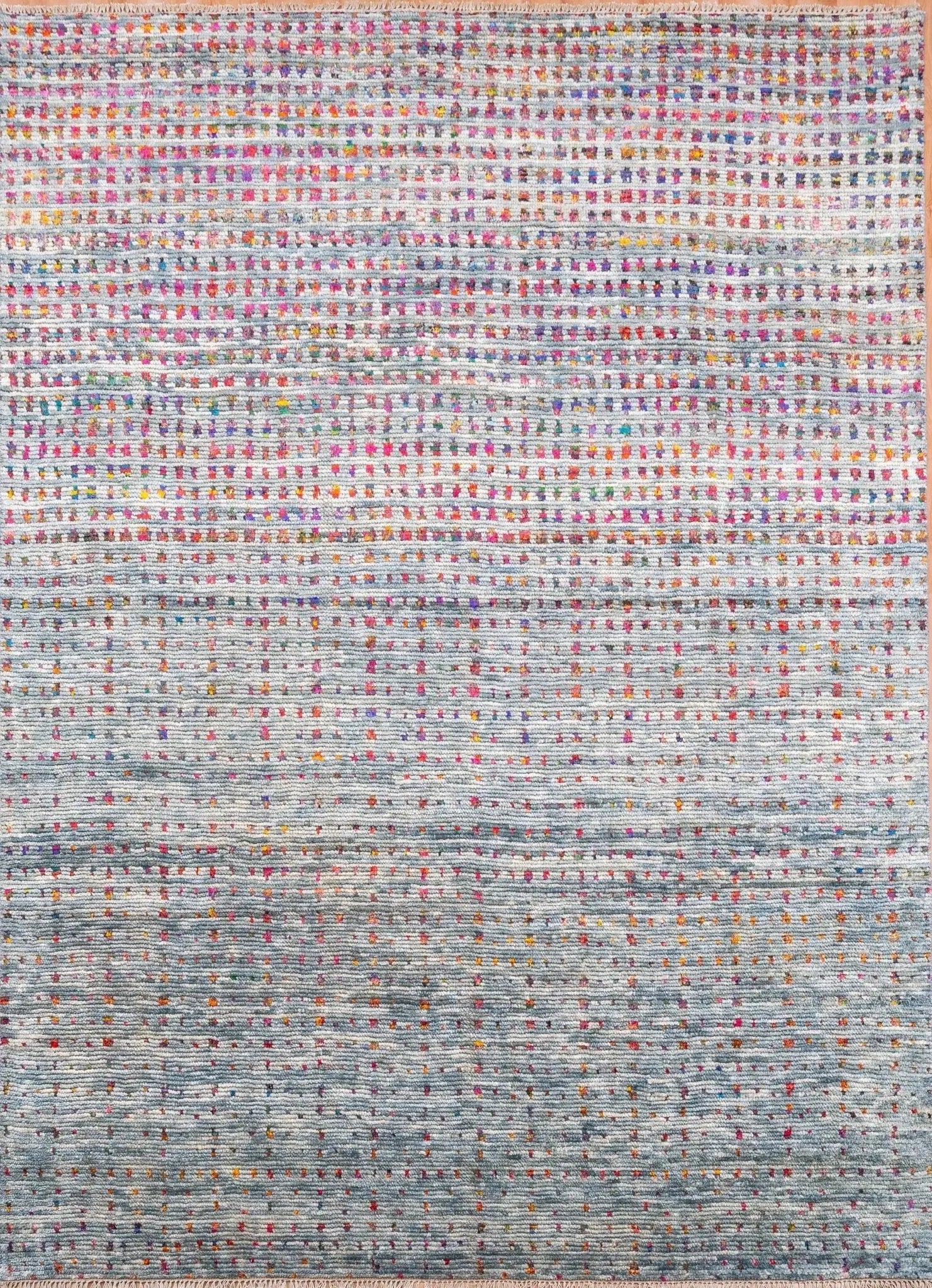 The Parisa PSA06 Denim/Multi Rug comes in various sizes, including 2x10, 5x7, 8x10, 8x11, 9x13, and 12x15 feet, accommodating different room dimensions.