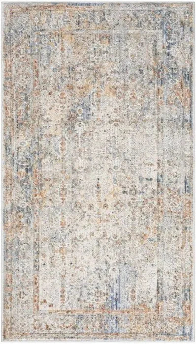 The Parisa PSA06 Denim/Multi Rug comes in various sizes, including 2x10, 5x7, 8x10, 8x11, 9x13, and 12x15 feet, accommodating different room dimensions.