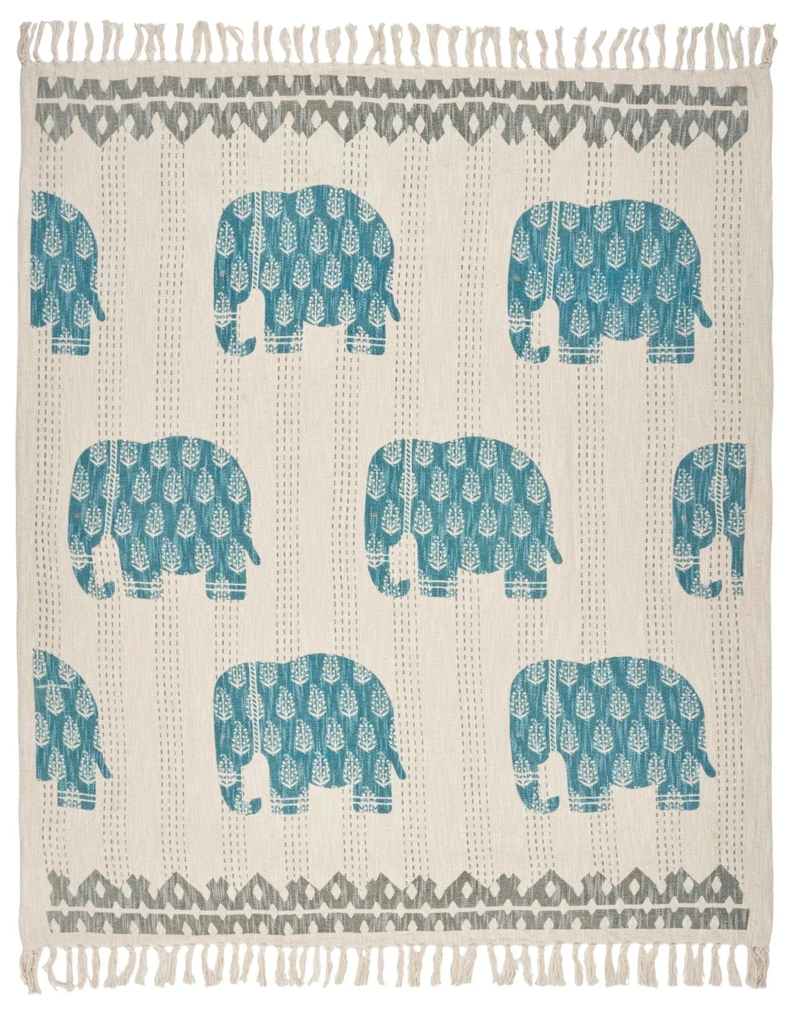 Come get cozy with your new favorite throw blanket. Bring globally and bohemian style to your home with this intricately designed piece. The elephant design is sure to transport you into your dream travel locations. Tempting to stay at home all day yet even if you can't, you can at least enjoy the view of your new throw blanket placed over a chair, folded onto the couch, or spread onto the bed. No matter the season there is always time to relax and get comfortable with your new addition to the home.