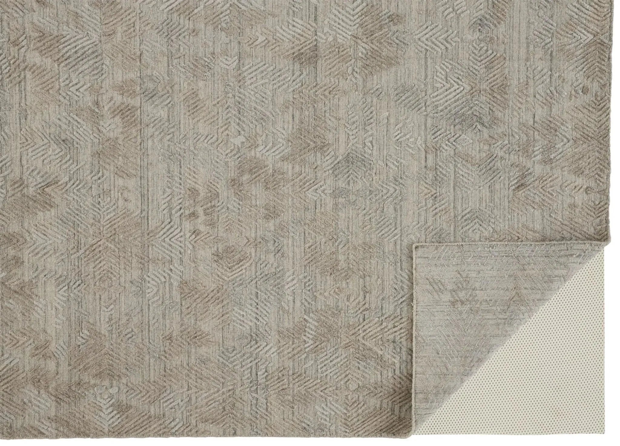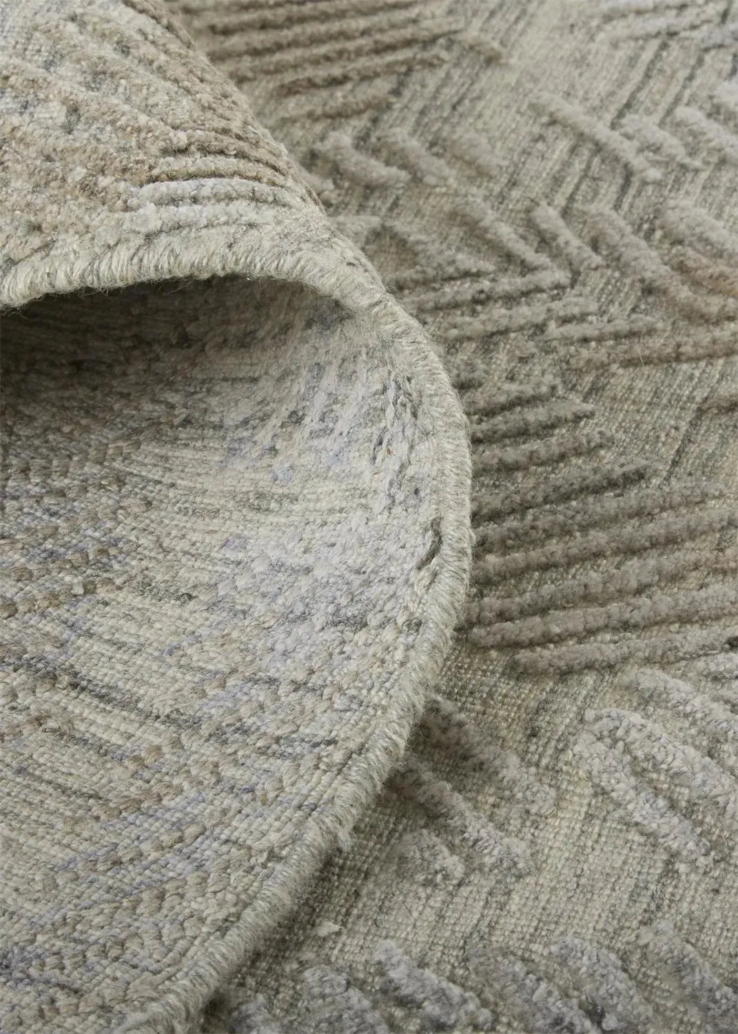 Imagine a lustrous softly-defined geometric relief rising above a heathered backdrop of space-dyed wool. This juxtaposition of both the subtle and striking mingle beautifully to create the Elias collection. Muted silvery grays gold pearl and loden are over-tufted to create floating design motifs atop a neutral wool loop base. This artfully crafted contrast creates a sophisticated aesthetic yet is suitable for a wide array of living spaces. Traverse a landscape of flowing geometry to find yourself suspended in Elias's "elevated" design.