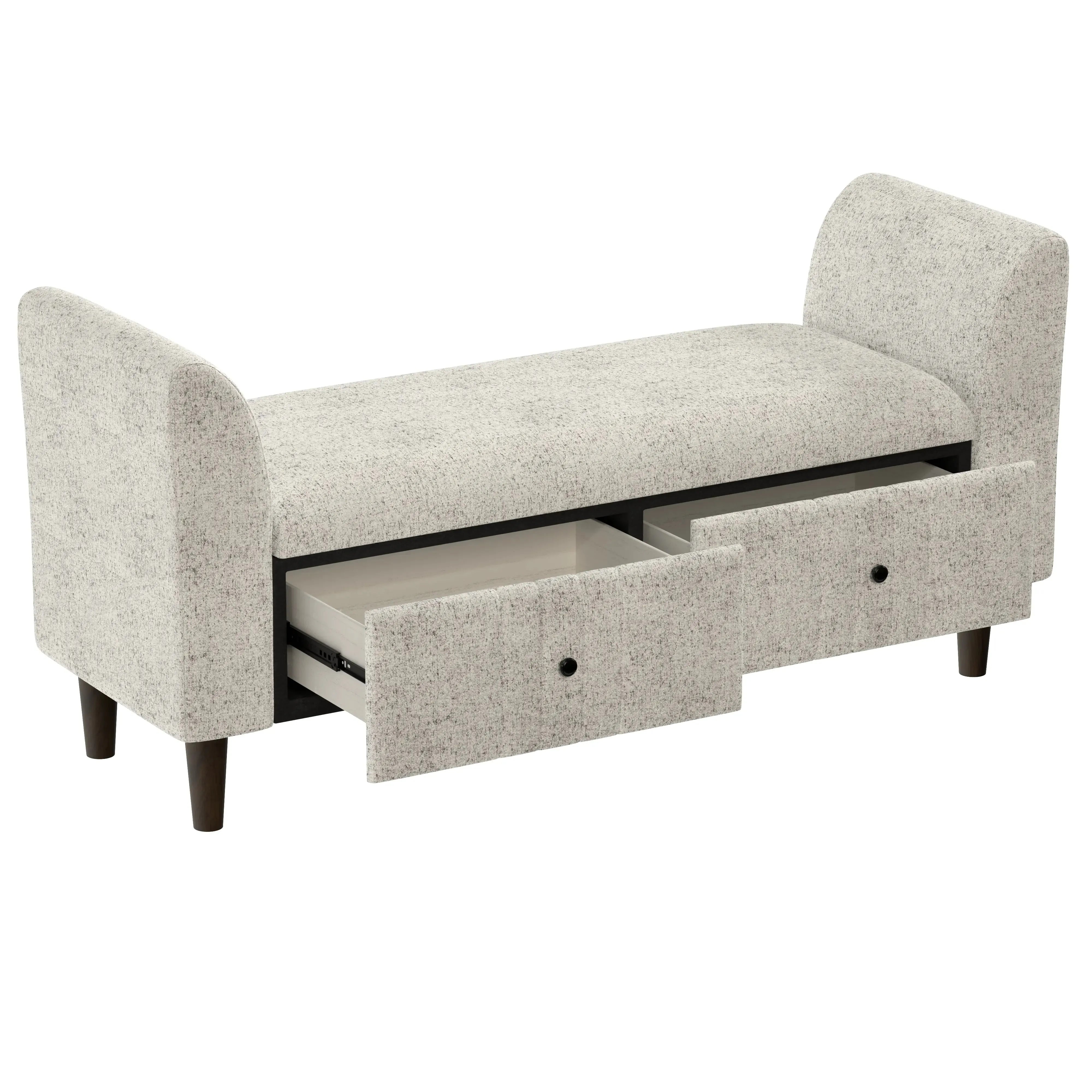 Wrapped in a soft, lightly textured chenille fabric, the Emily Ottoman is as inviting as it looks. The subtle flecked tones of the beige contemporary fabric and traditional solid wood legs match any décor, while the vertical channel stitching on the drawer fronts adds a delicate touch of detail. As you pull open the smooth-gliding drawers, you’ll find a hidden home for everything from cozy blankets to remote controls to keep your space clutter-free. The Emily Ottoman is a statement piece that quietly transforms your living area.
