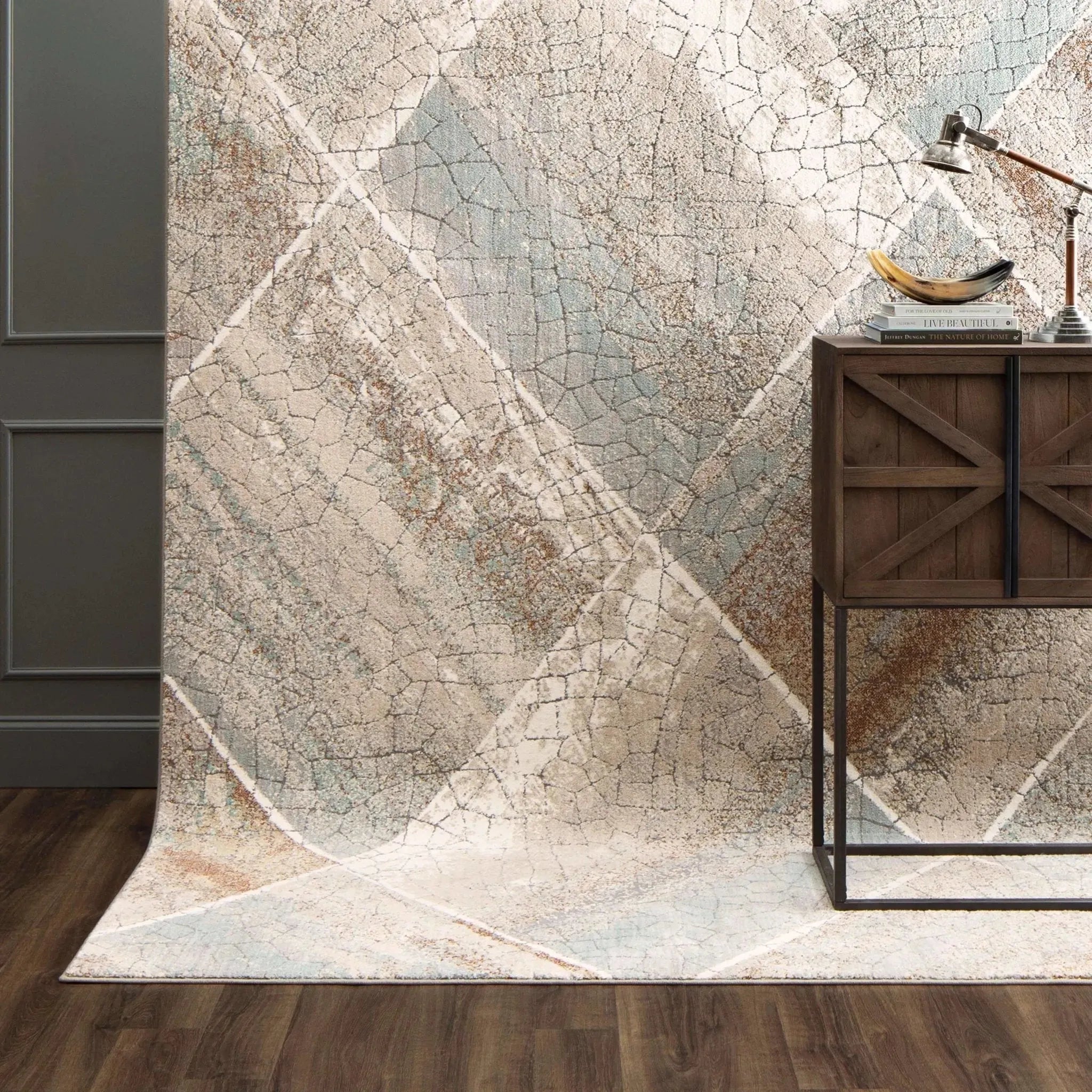 This rug is crafted from 100% New Zealand wool, offering both durability and a luxurious feel.