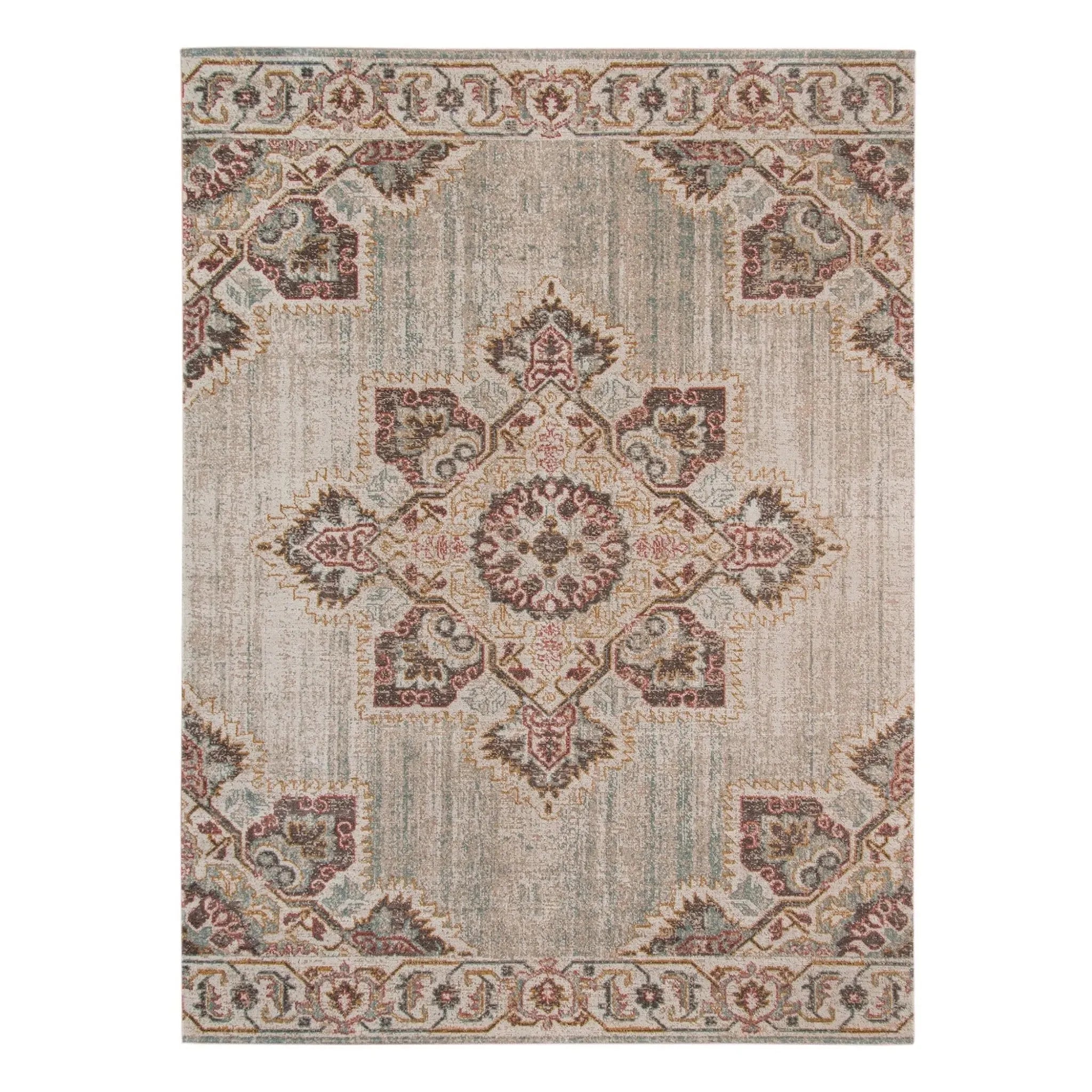 Traditional designs developed to bring old world charm to your home or office. Flaunting deep, rich color palettes, this rug is versatile enough to easily fit into a traditional or transitional home. Featuring a vintage, weathered look and a super low pile, you'll love both its design and craftsmanship. Power-loomed in Turkey from 100% polypropylene, this rug is super durable and low-maintenance.