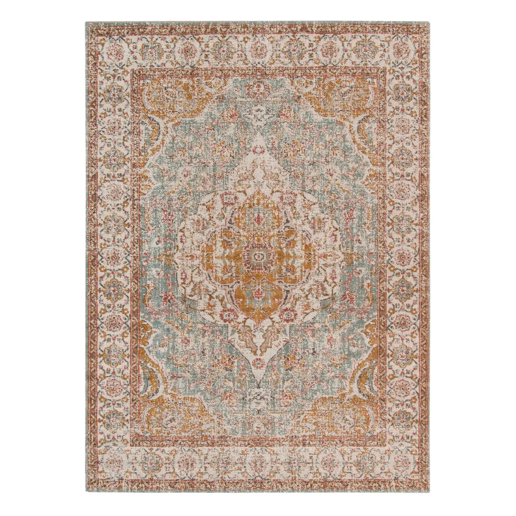 Traditional designs developed to bring old world charm to your home or office. Flaunting deep, rich color palettes, this rug is versatile enough to easily fit into a traditional or transitional home. Featuring a vintage, weathered look and a super low pile, you'll love both its design and craftsmanship. Power-loomed in Turkey from 100% polypropylene, this rug is super durable and low-maintenance.