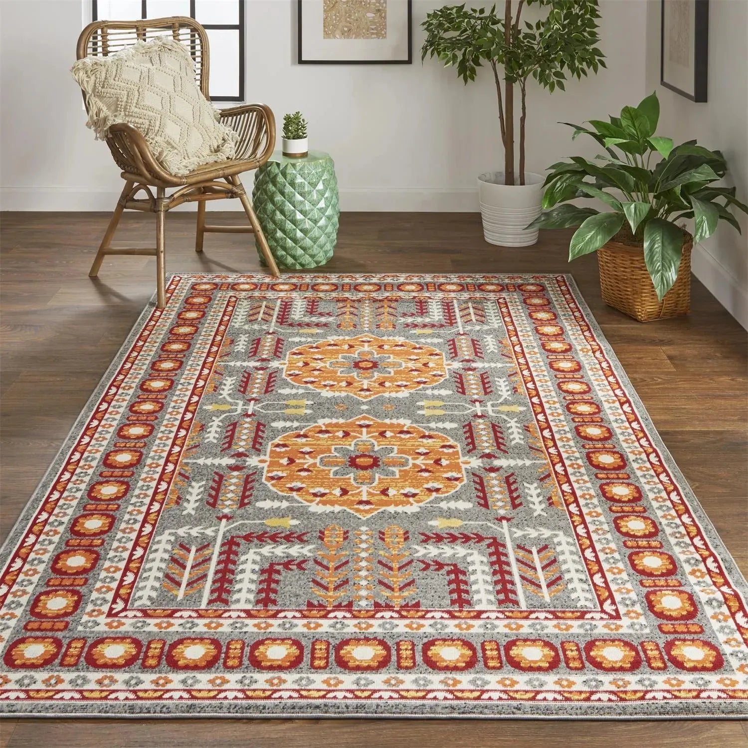 Inspired by folkloric motifs the Foster collections eye-catching and vibrant colors will breathe new life into any space. Its soft low cut pile and easy care features makes these rugs a welcome addition to all areas of your home.