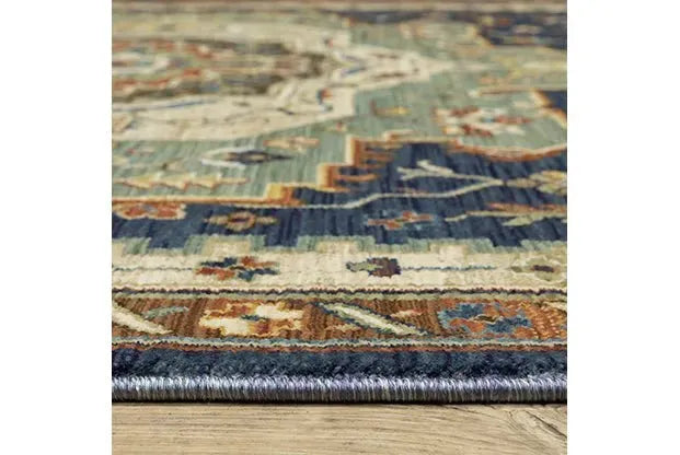 The Parisa PSA06 Denim/Multi Rug comes in various sizes, including 2x10, 5x7, 8x10, 8x11, 9x13, and 12x15 feet, accommodating different room dimensions.