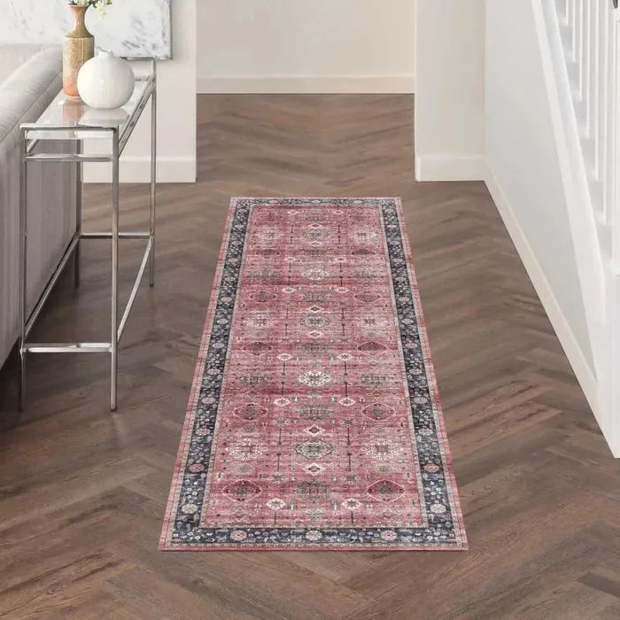 Add a relaxed vibe to your space with this vintage-inspired rug from the Fulton Collection. The classic Persian pattern is presented in a brick red, grey, and blue multicolored palette finished with an artful fade that brings a cultured look to your living room, bedroom, or dining room. This printed rug is made from durable polyester yarns with a non-shedding, non-slip back ideal for busy households with pets, kids, and frequent guests.