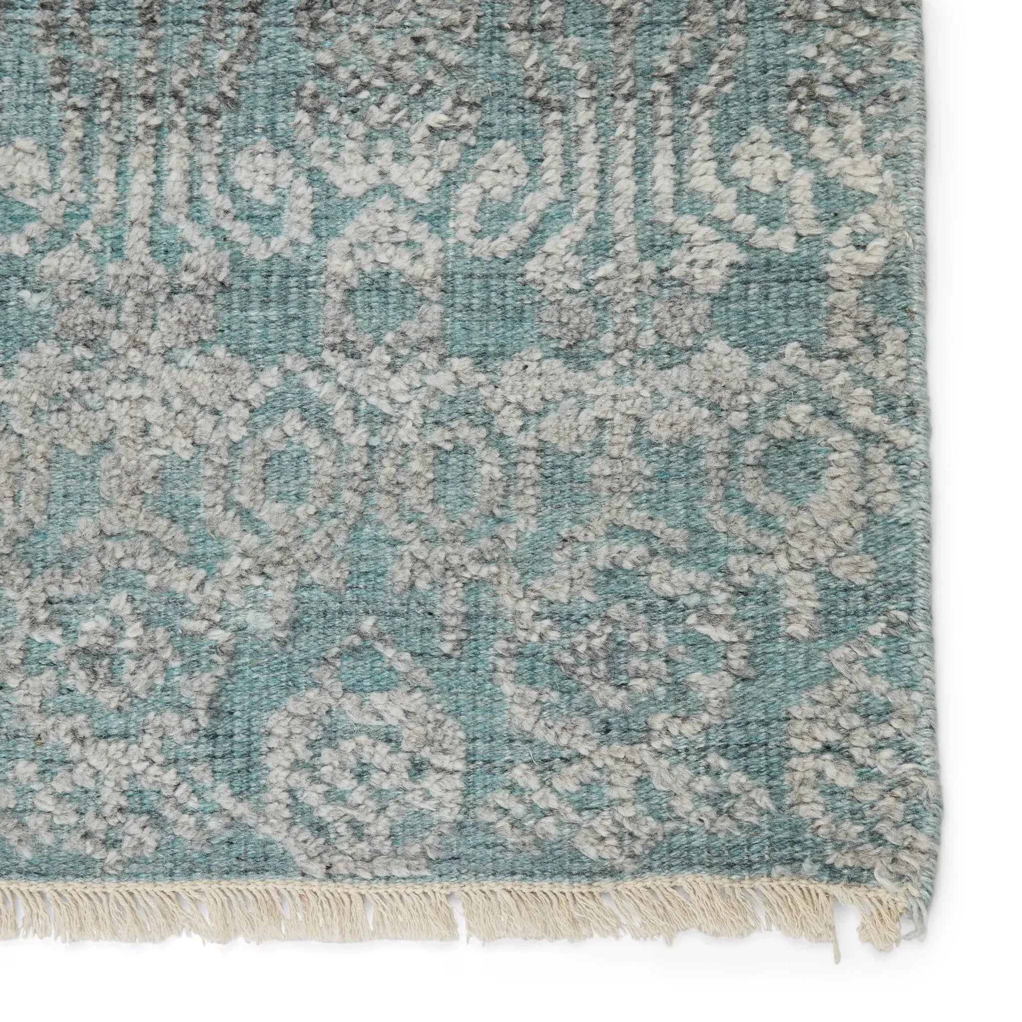 The textural and intricate Gaia collection boasts an assortment of transitional filigree motifs in easily decorated color schemes. Crafted with a high-low carved texture, the hand-knotted Kora rug features a blue and gray colorway for a soft and serene look. The space-dyed effect of the wool and viscose yarns lends a one-of-a-kind quality to every design.