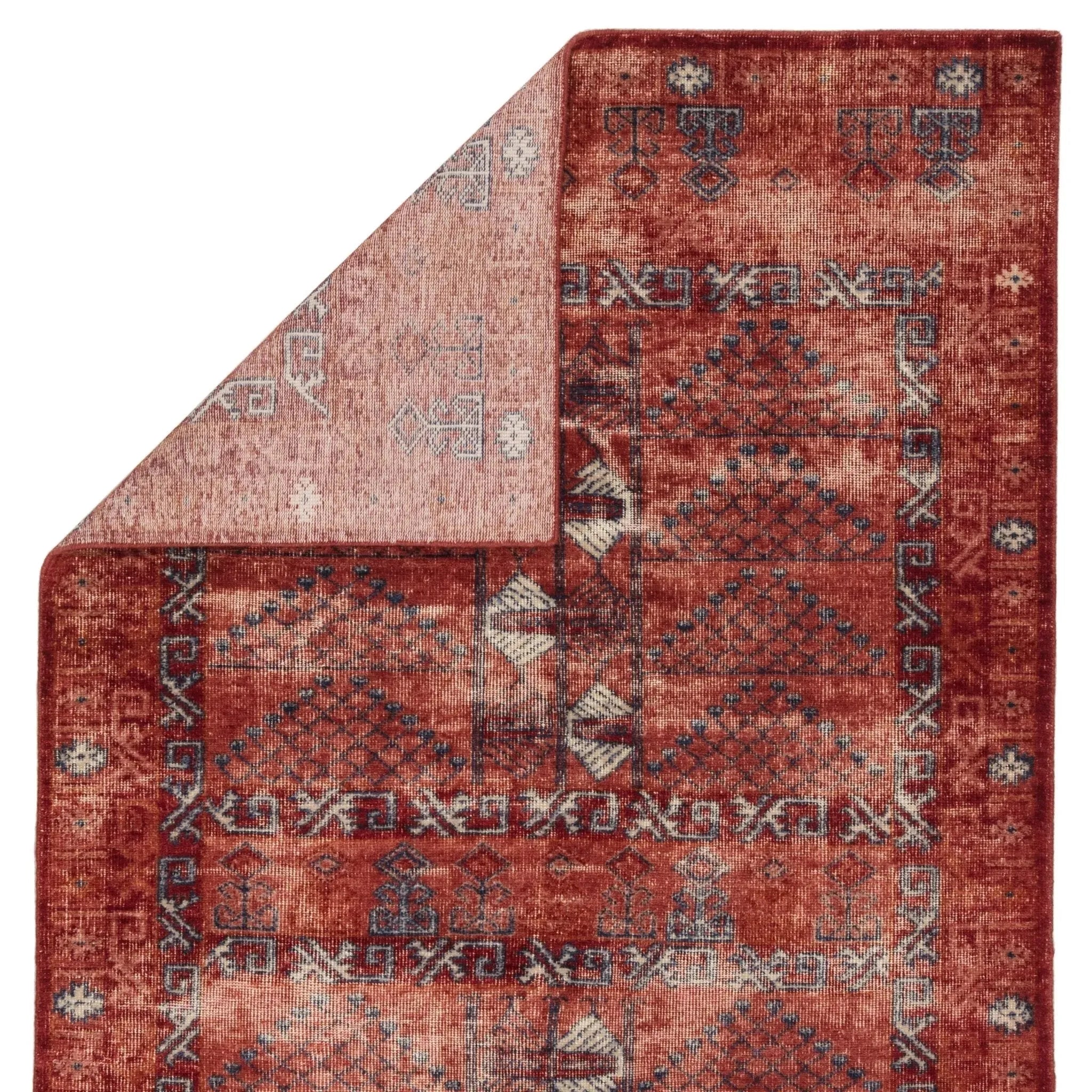 The updated traditional Gallant collection is an assortment of beautifully colored hand-knotted designs. The Montreal area rug showcases a vintage-inspired design with geometric details in a bright yet distressed red and royal blue colorway. Hand knotted of high-quality wool, this artisan-made rug makes a bold and vivid statement in any stylish interior.