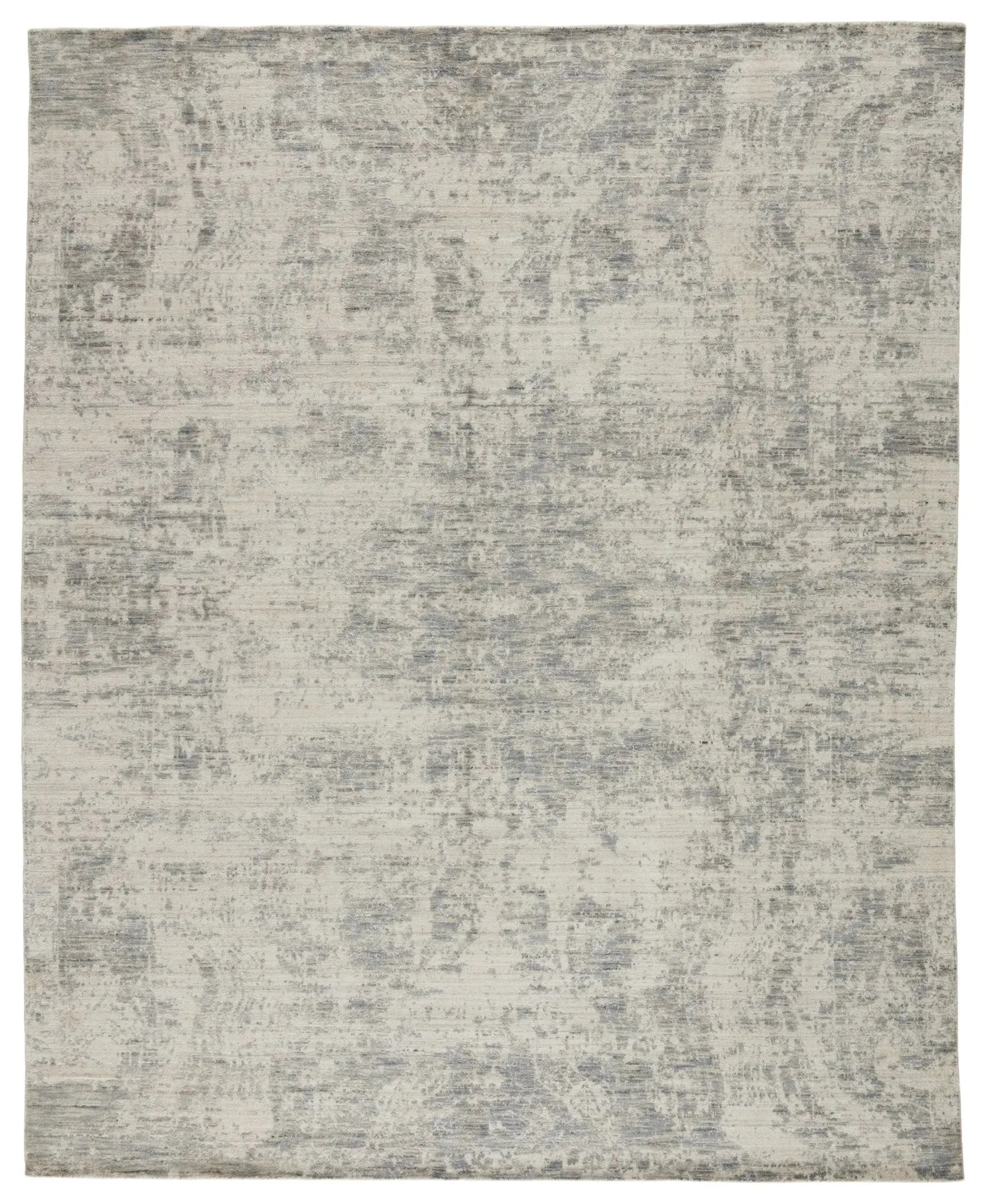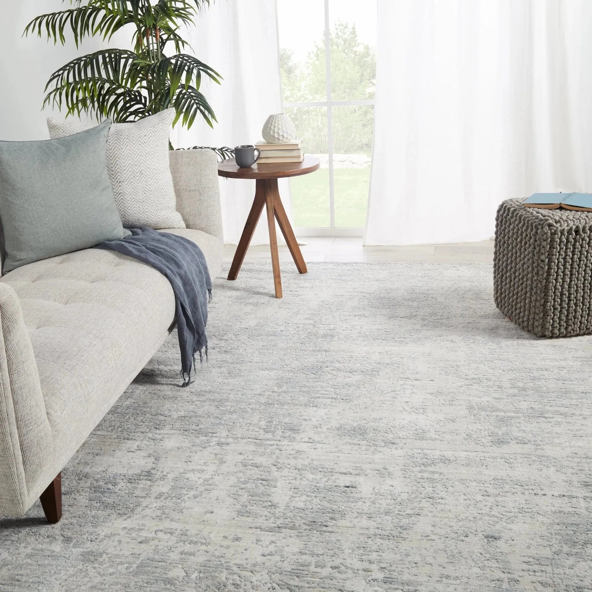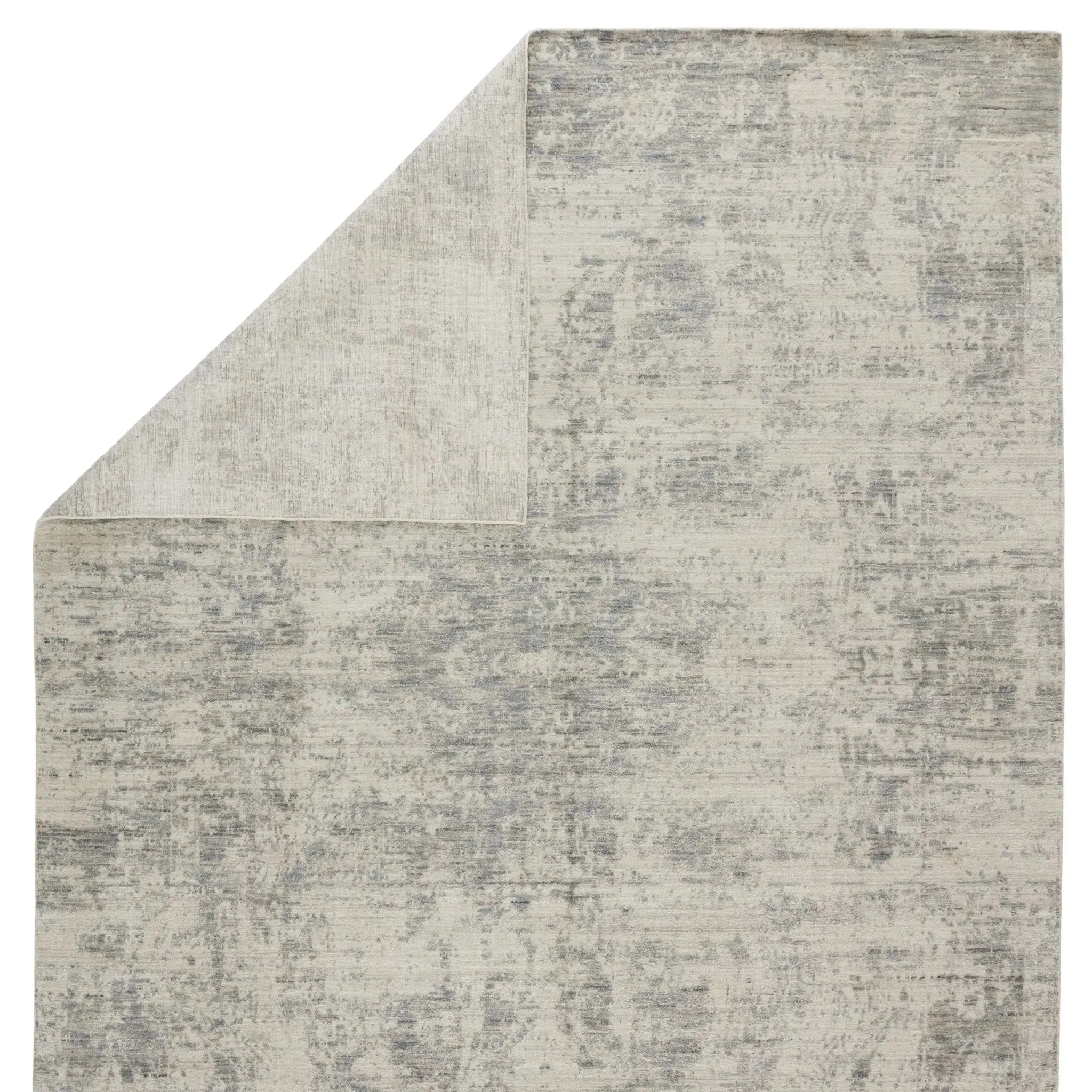 The elegant and modernized designs of the Genevieve collection feature an exquisite hand-loomed jacquard weave with stunning texture. The Lizea rug boasts a distressed, hand-embossed motif in a neutral ivory, gray, and blue colorway. A blend of wool and soft viscose lends dimension and depth to this handwoven rug.