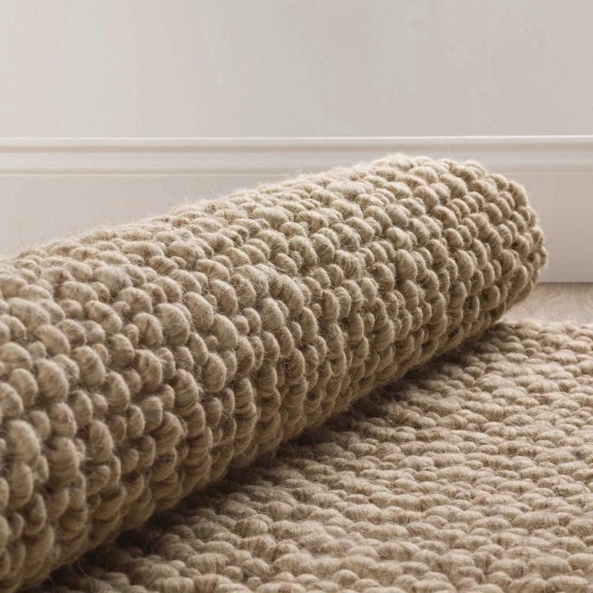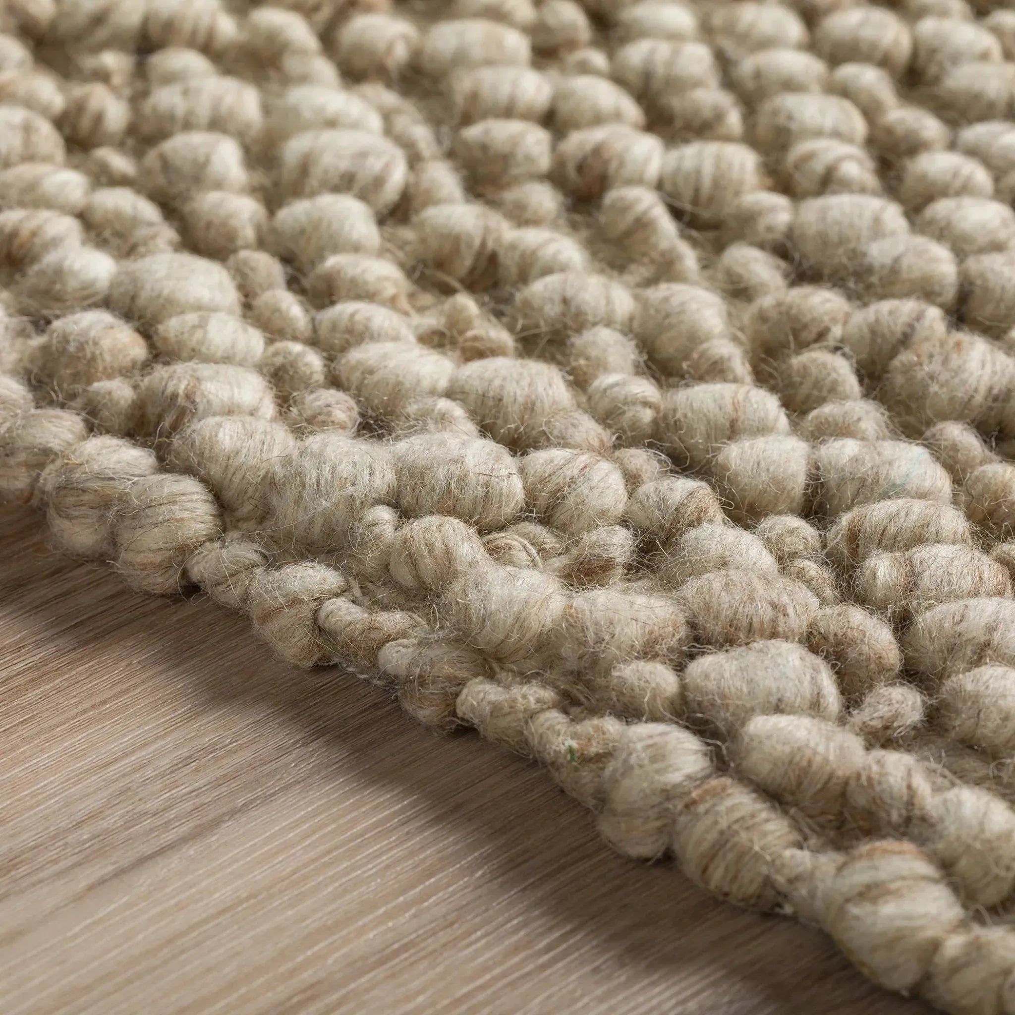 Elevate your living space with an area rug that seamlessly combines artisan craftsmanship with contemporary aesthetics. Hand-loomed meticulously using multi-tonal chunky wool yarn, this rug boasts a distinctive cobblestone texture, giving its thick loop pile an irresistible touch and feel. It's more than just a floor covering; it's a conversation starter. Add this piece to your decor, and watch it transform your space.