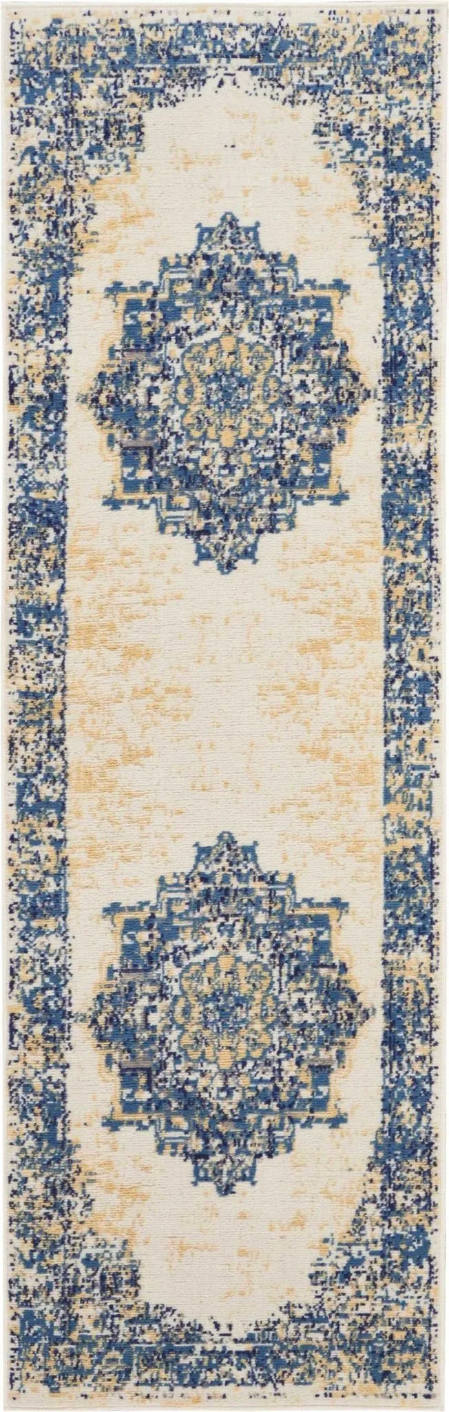 The Parisa PSA06 Denim/Multi Rug comes in various sizes, including 2x10, 5x7, 8x10, 8x11, 9x13, and 12x15 feet, accommodating different room dimensions.