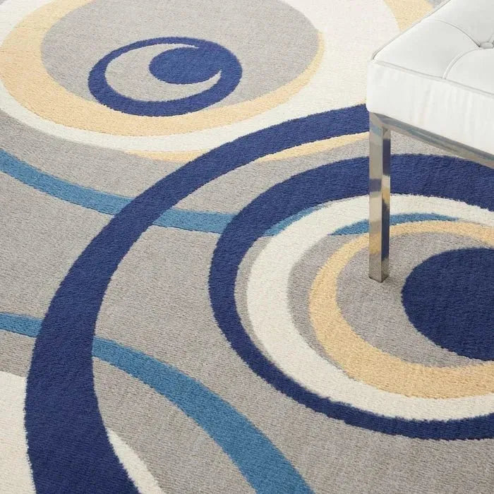 The Parisa PSA06 Denim/Multi Rug comes in various sizes, including 2x10, 5x7, 8x10, 8x11, 9x13, and 12x15 feet, accommodating different room dimensions.