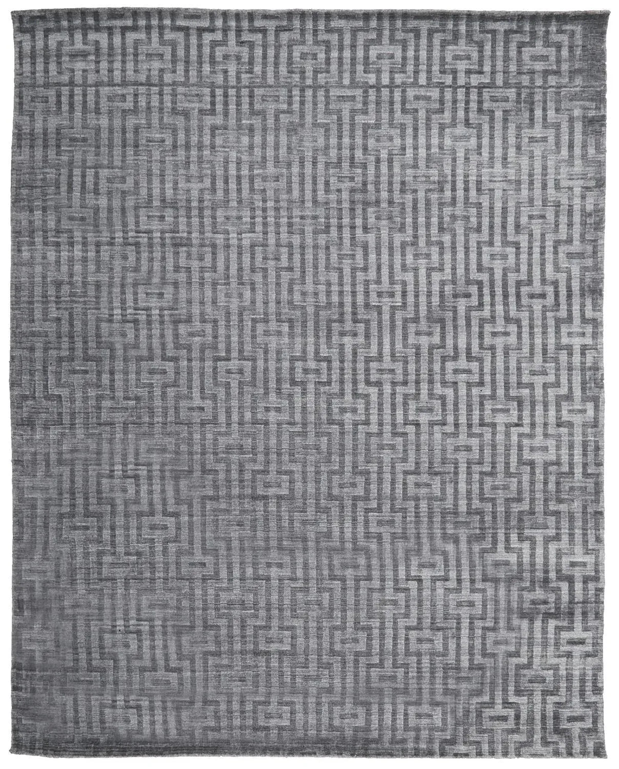 Soothing neutrals blues and violets, and a plush pile soften the geometric patterns of the Gramercy Collection. Hand loomed of viscose each piece features beautiful variation of tones within each design. The hand carving imparts movement and textural interest.