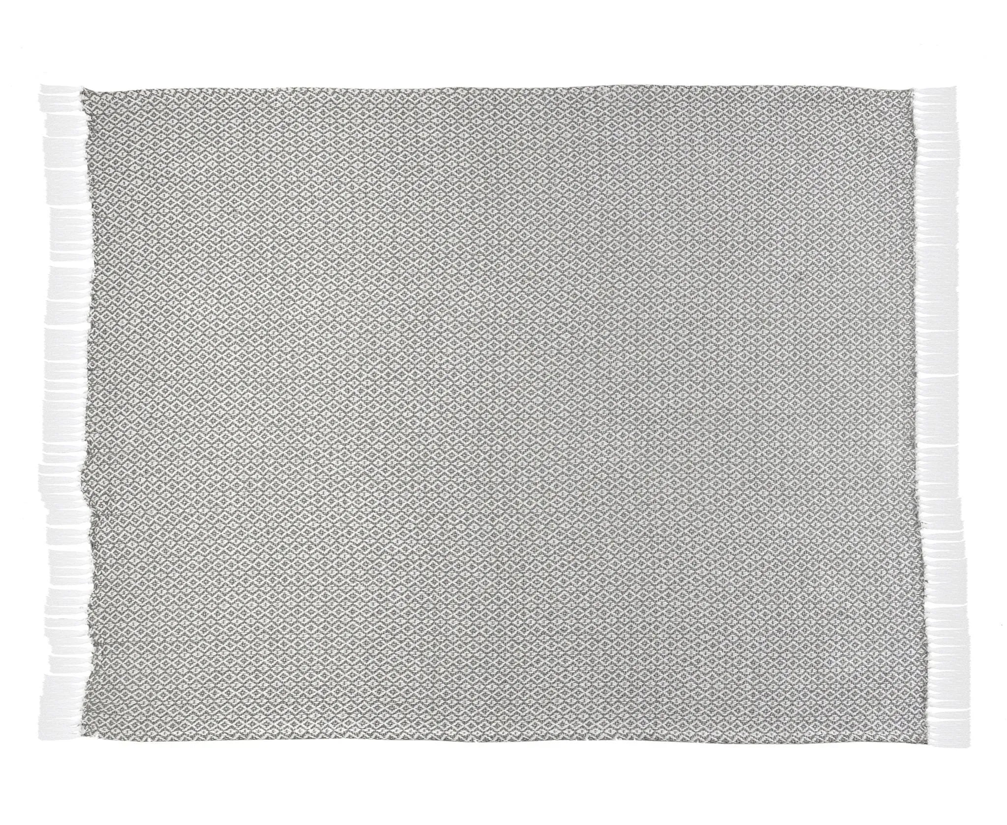 Come get cozy with your new favorite throw blanket! With your new addition, it is quite tempting to stay at home all day. Even if you can't, you can still enjoy the view of your new throw blanket placed over a chair, folded onto the couch, or spread onto the bed. If a comfy and homey look is what you are going for then this is the throw for you! The well-toned gray and ivory coloring goes well with a variety of different home decor themes. The fringe and geometric diamond features also give this blanket an eye-catching appearance. No matter the season, there is always time to relax and snuggle up with this new addition to your home.