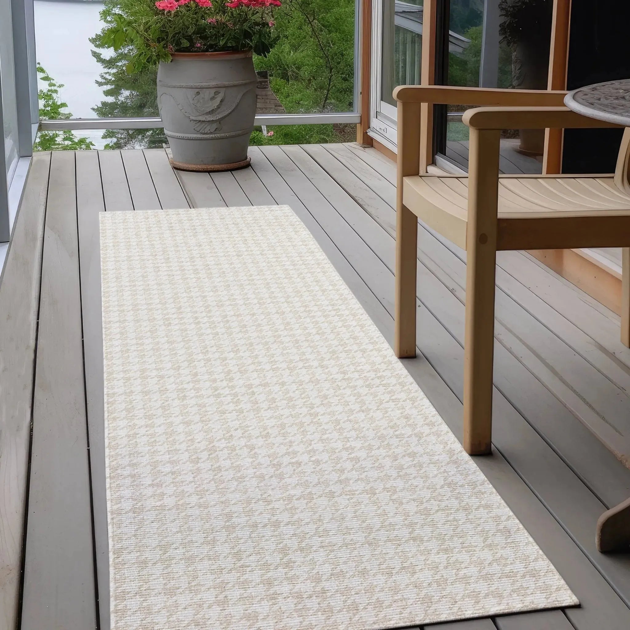 Indulge in the classic charm of houndstooth styling with our Hinton HN1 Linen Rug, available in 8 versatile colorways to effortlessly complement any decor. Whether adorning your indoor space or enhancing your outdoor area, this rug's UV stabilized design ensures long-lasting vibrancy.