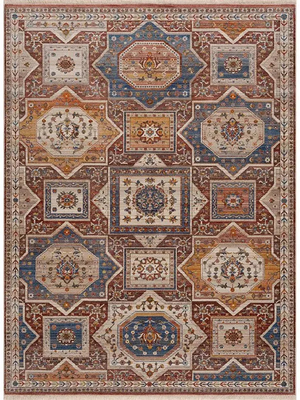 The Parisa PSA06 Denim/Multi Rug comes in various sizes, including 2x10, 5x7, 8x10, 8x11, 9x13, and 12x15 feet, accommodating different room dimensions.