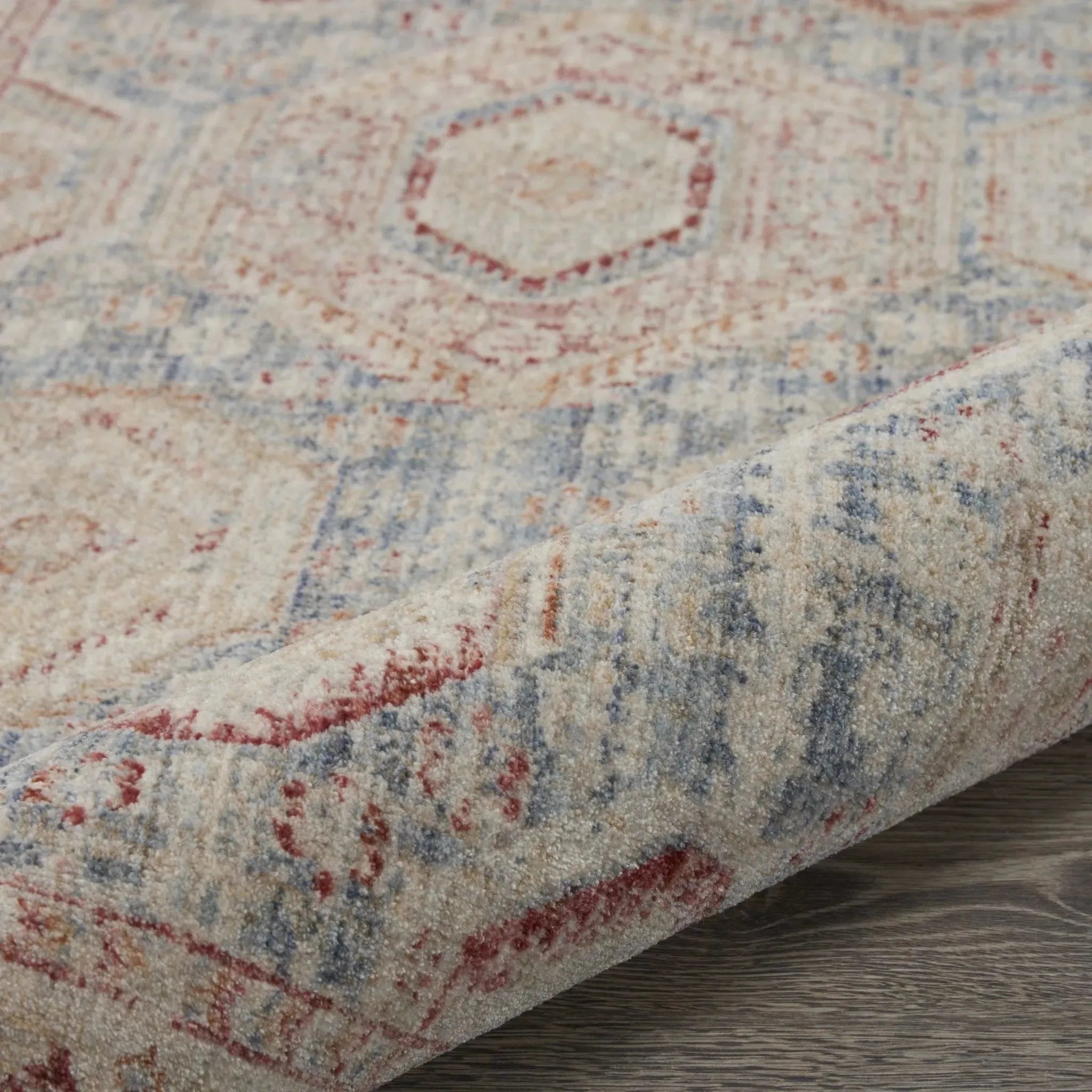Homestead presents a collection of Persian-inspired area rugs created for todays lifestyle. The traditional geometric and floral motifs are softly woven with modern, non-shed fibers and finished with classic borders and a small, unfussy fringe. Its palette of soft colors is gently faded for a distressed vintage look that adds warmth and subtle sheen to a favorite bedroom, living room, family room or other gathering space. Homestead rugs are protected by Nouri-Guard fiber protectant that repels most food, beverage, dirt, water and oil-based stains. Keep your home looking its best with a family-friendly Homestead rug and Nouri-Guard protection!