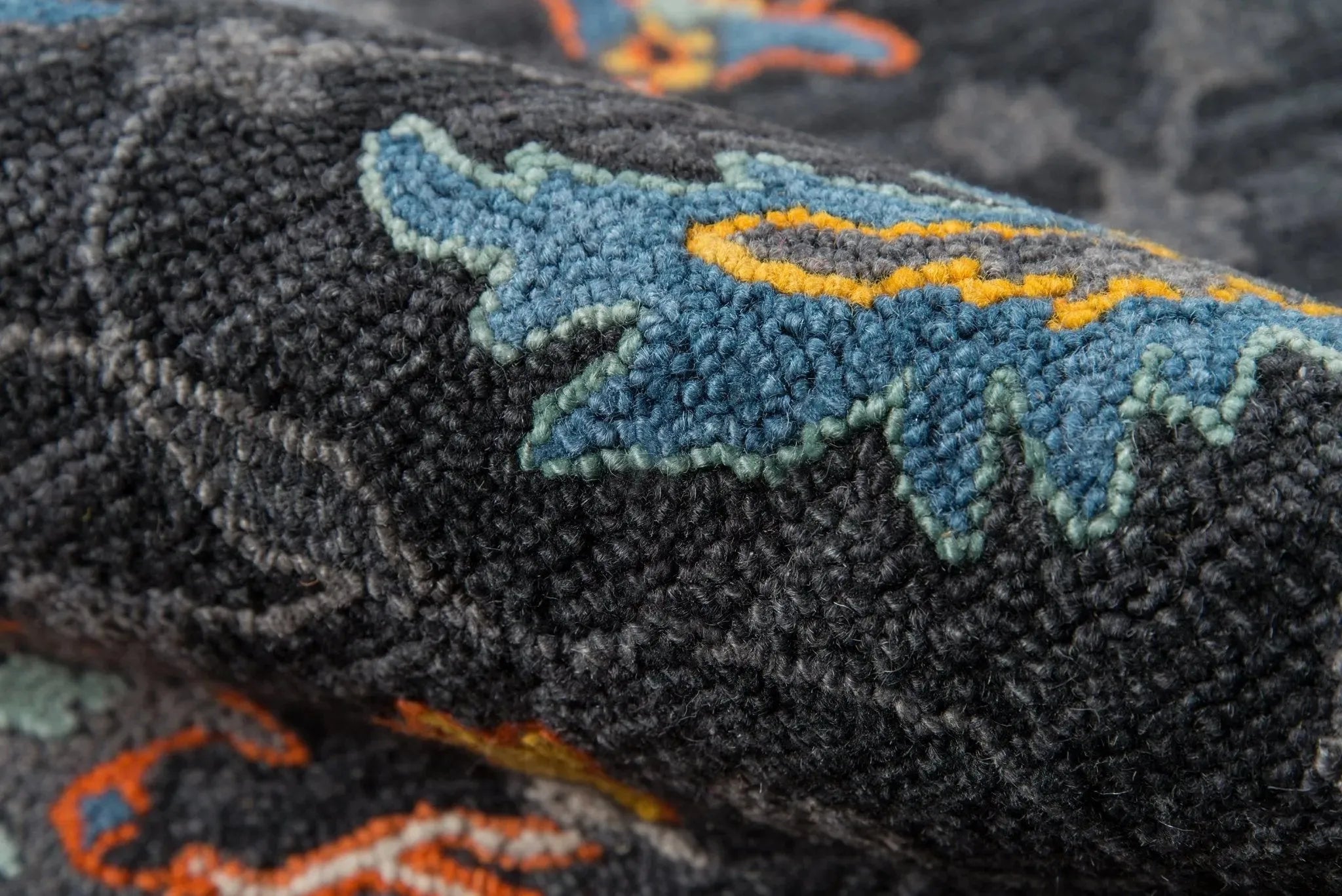 The saturated shades of this decorative area rug reinvent the classic Persian carpet in a vivid color palette. The captivating assortment offers a modern interpretation of traditional rug motifs, as vibrant pink, orange, blue and yellow tones form flowers, vines, palmettes and medallions in colors beautiful and bold. Hand tufted from 100% natural wool, each floorcovering makes a dramatic design statement as a focal point on floors throughout the home. This rug is perfect for your living room, dining room, den, bedroom, or any living space