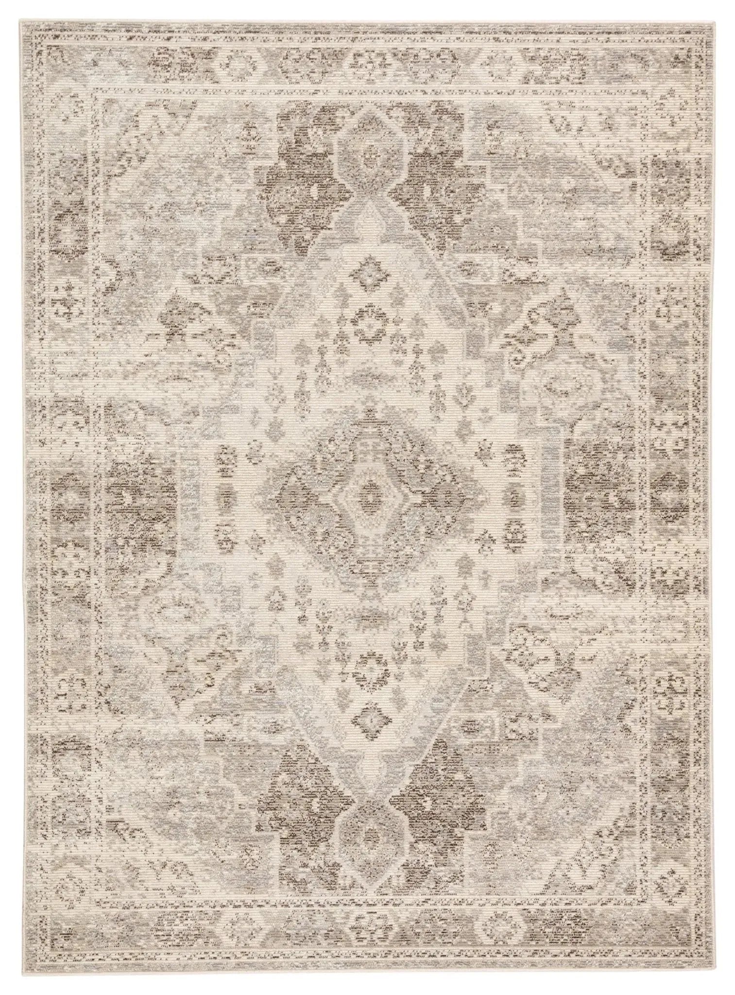 Mixing a vintage-inspired design with contemporary hues, the Indie collection brings vibrancy and unique style to indoor and outdoor spaces. The Farra rug showcases an intricate medallion pattern in a neutral cream, gray, and brown palette. Crafted of weather-resistant polypropylene, this updated traditional rug boasts ribbed pile that emulates classic hand-knotted construction.