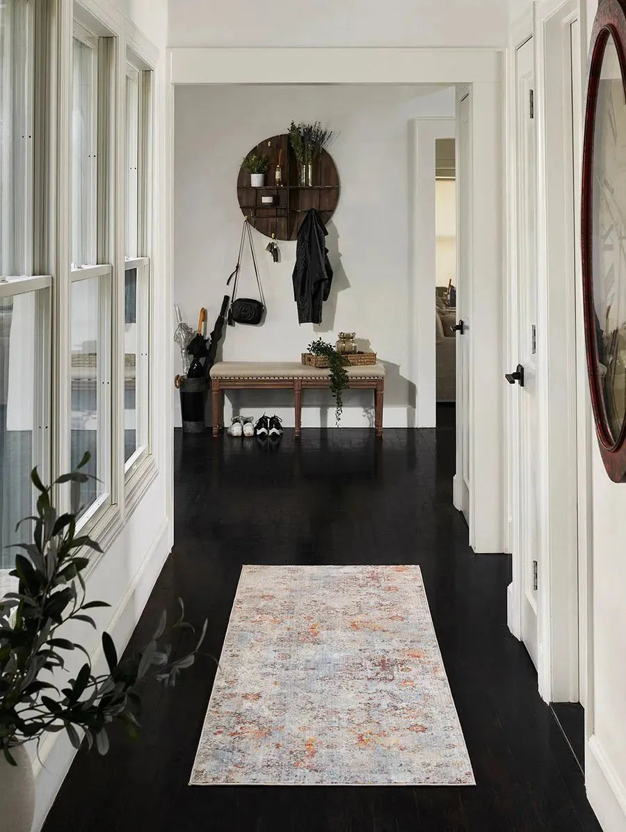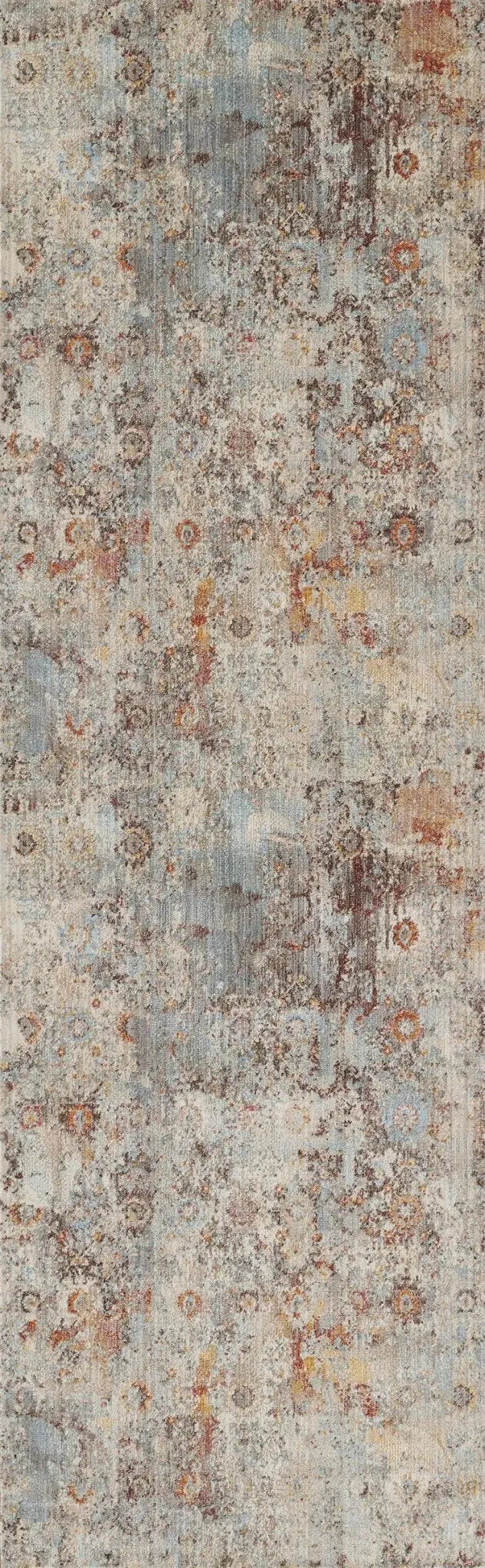 The Parisa PSA06 Denim/Multi Rug comes in various sizes, including 2x10, 5x7, 8x10, 8x11, 9x13, and 12x15 feet, accommodating different room dimensions.