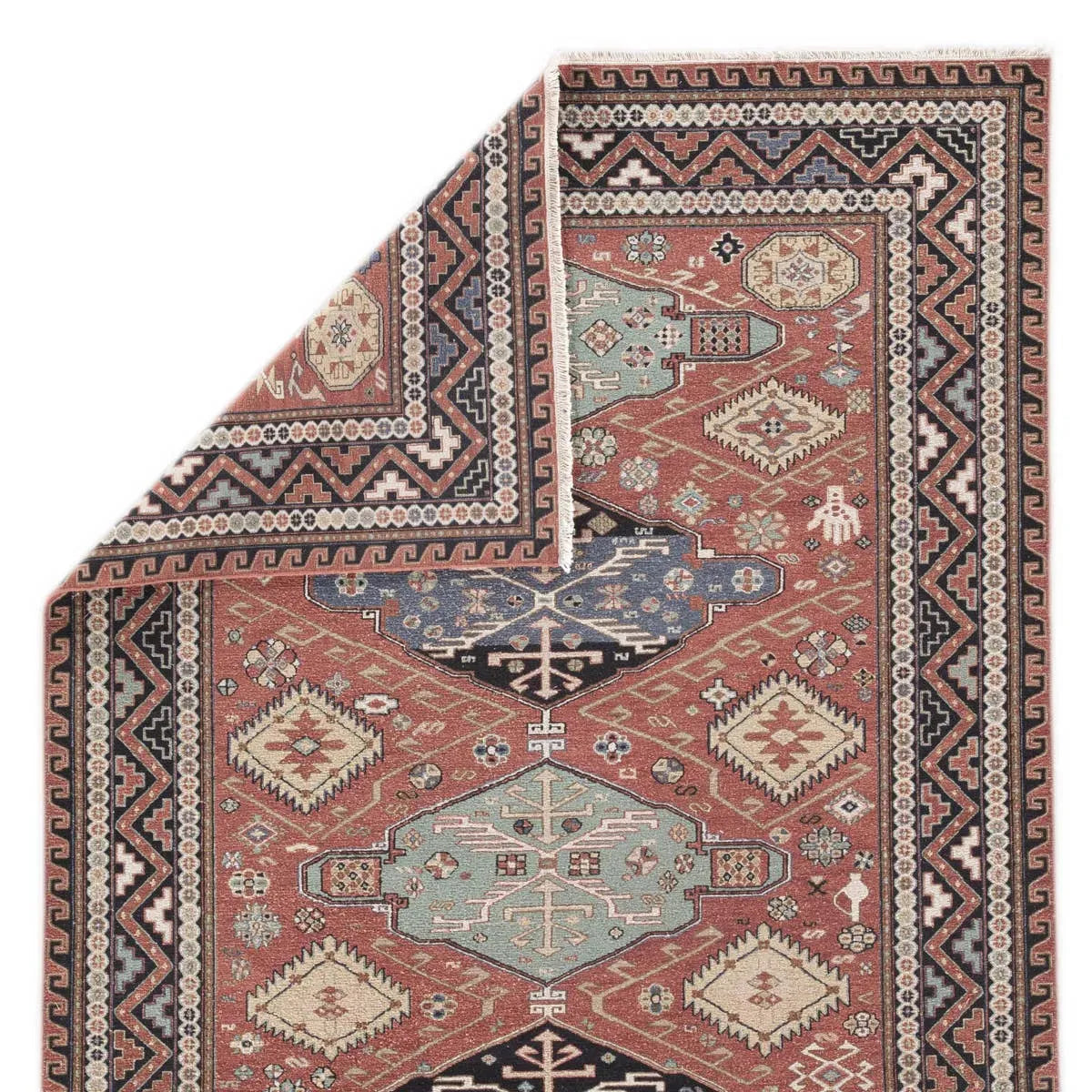The Jaimuk collection calls on antique motifs to bring an assortment of vintage looks to transitional-style spaces. The Granato rug features a Soumak-inspired design of incredibly detailed and geometric symbols, hand knotted of durable wool. A traditional colorway of red, blue, and green enhances the global charm, while classic fringe accents the intricate patterning of this artisan-crafted piece.