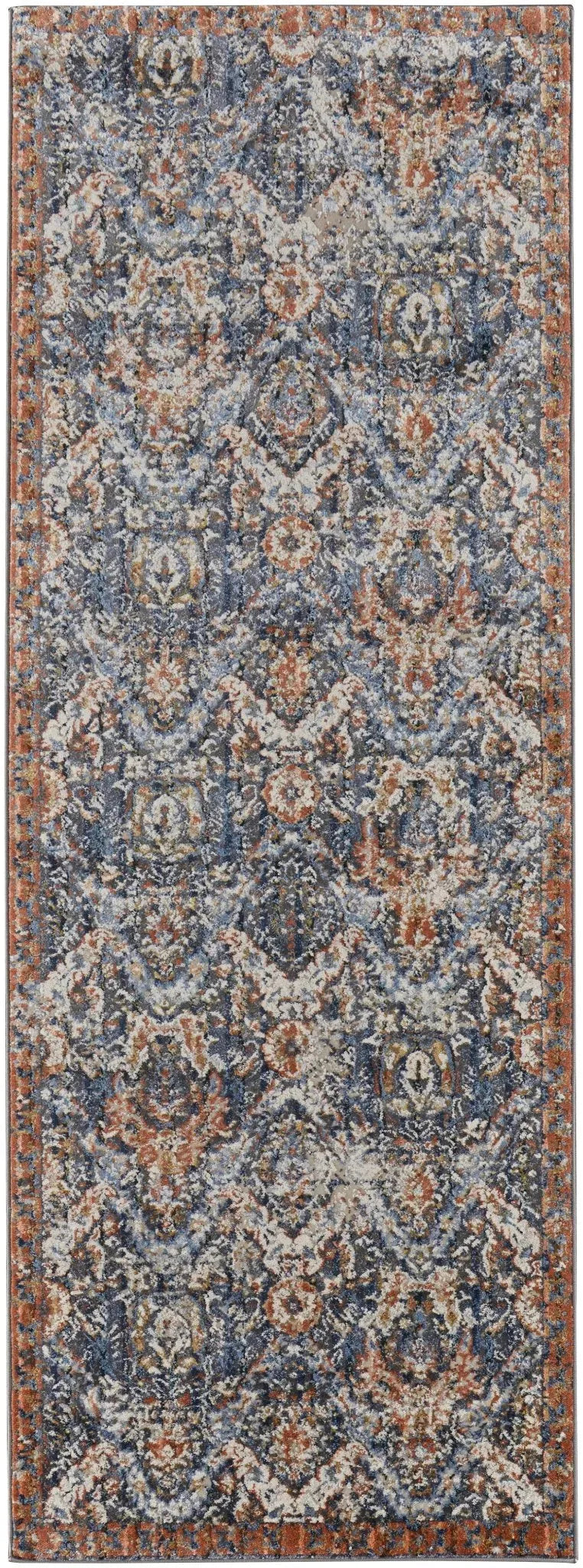 The Parisa PSA06 Denim/Multi Rug comes in various sizes, including 2x10, 5x7, 8x10, 8x11, 9x13, and 12x15 feet, accommodating different room dimensions.