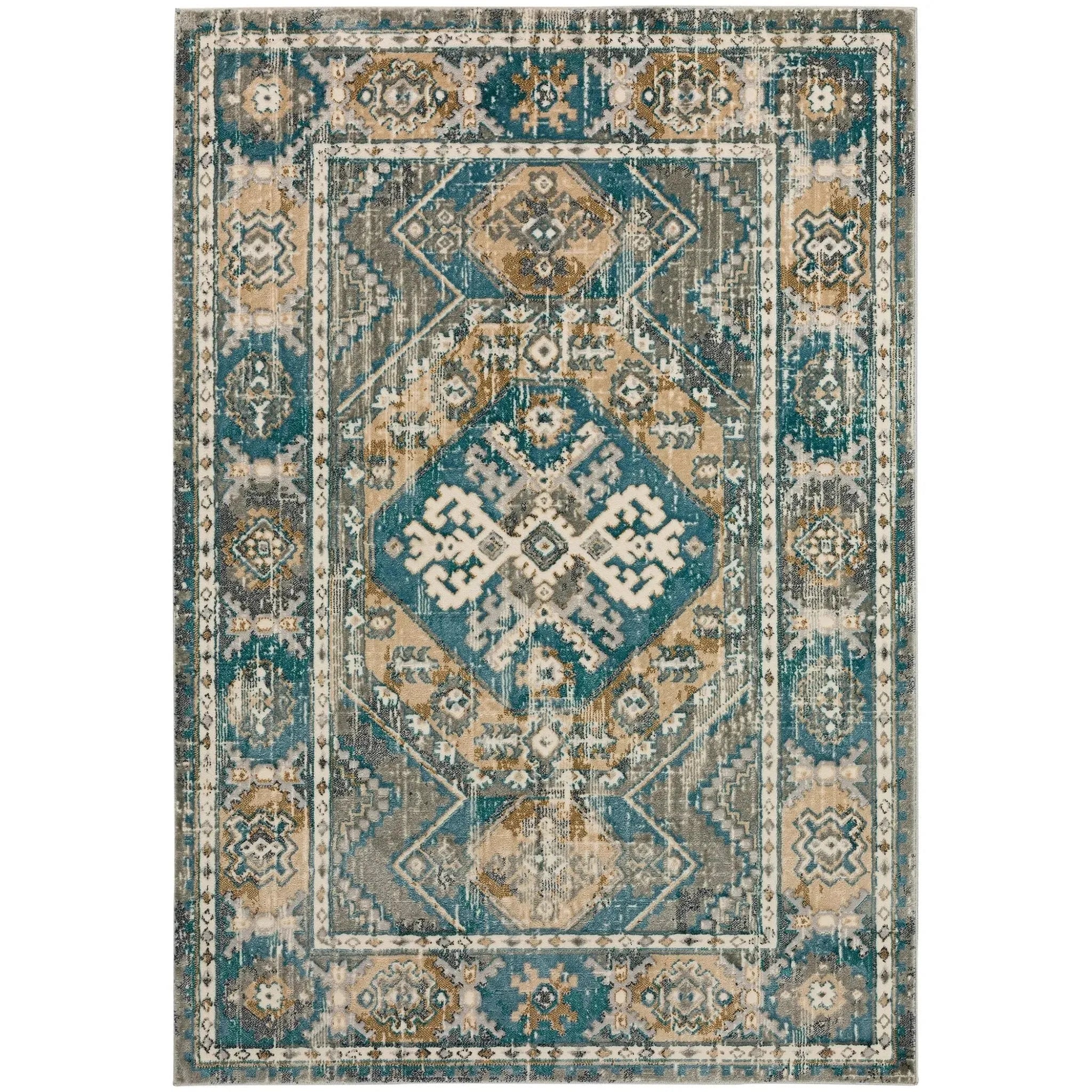 The Parisa PSA06 Denim/Multi Rug comes in various sizes, including 2x10, 5x7, 8x10, 8x11, 9x13, and 12x15 feet, accommodating different room dimensions.