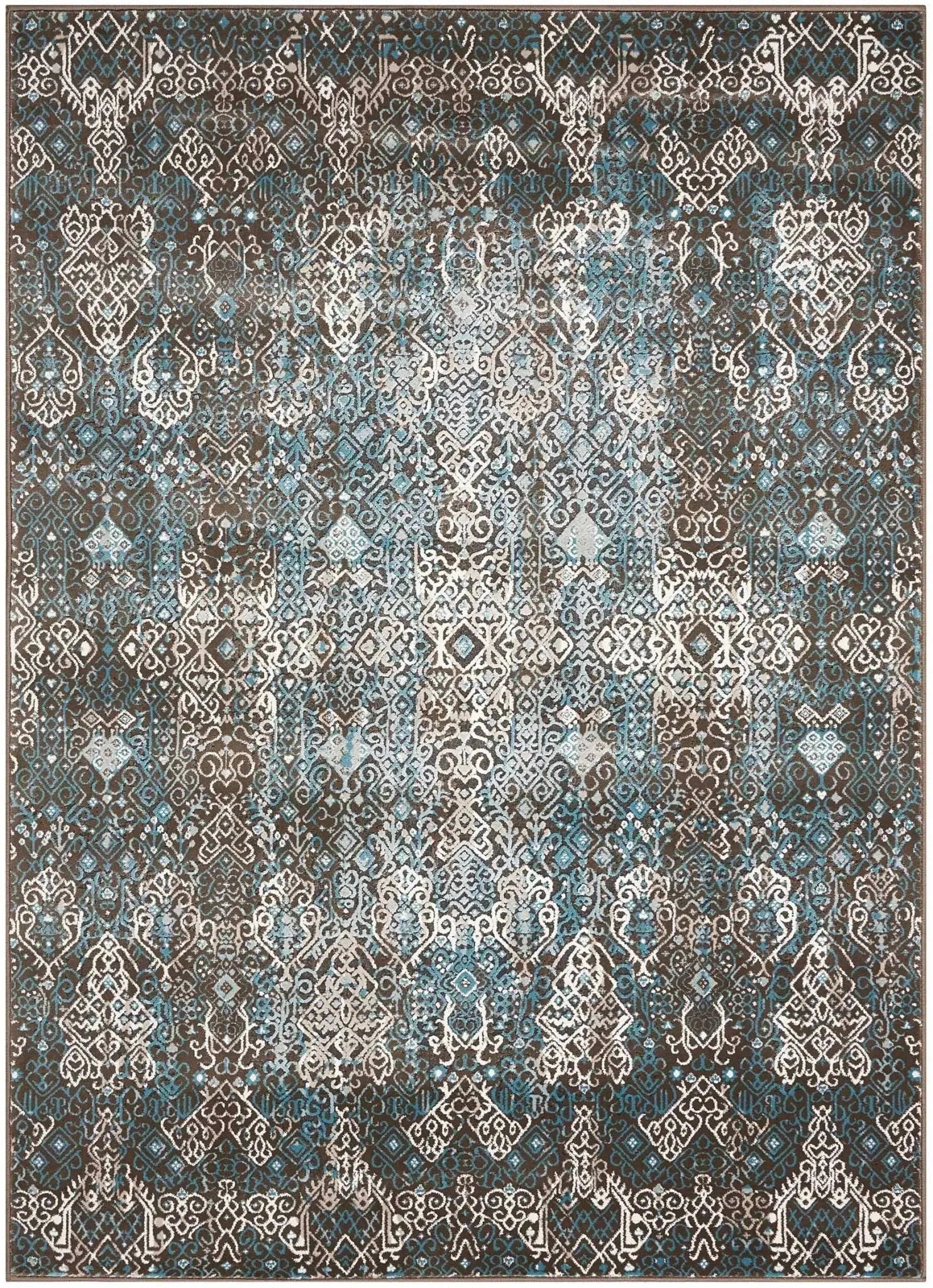 Karma is a warm and inviting collection of radiant tribal patterns in artfully gradated color palettes, power-loomed in Turkey of a silky polypropylene/polyester blend and featuring antique-inspired design effects for a study in texture, tone and dimension. This rug is perfect for your living room, dining room, den, bedroom, or any living space.