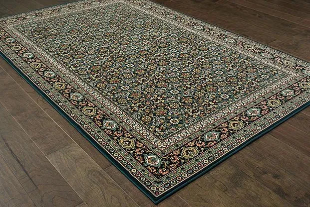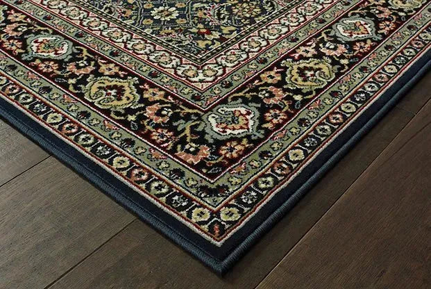 The Kashan collection showcases timeless traditional designs in classic colors of alabaster, true red, deep Atlantic blue, and black with accents of wedgewood, terracotta, soft gold, and sage. Machine-made of durable, easy care polypropylene, the Kashan collection has a soft, luxurious hand and dense pile. This rug is perfect for your living room, dining room, den, bedroom, or any living space.