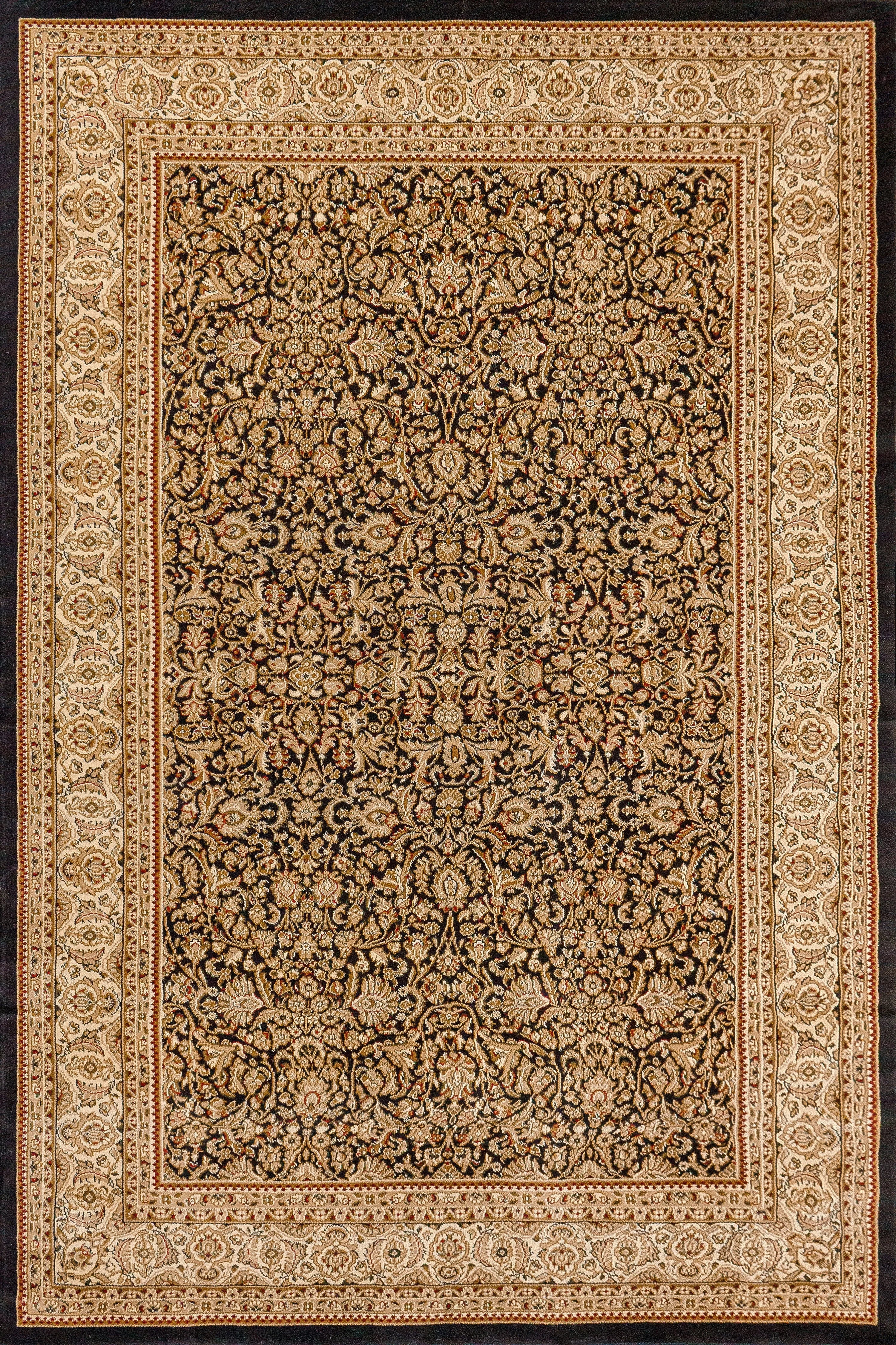 The rug showcases an exceptional Persian floral design with curvaceous leaves, bright blossoms, and other classic botanical motifs, bringing vivid energy to your living space.