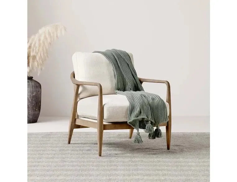 The Lennon Chair complements a wide range of décor. Constructed from solid hardwood, this chair offers both durability and strong support. Its neutral tone and classic design make it a versatile addition to any space. With its comfortable seating and sturdy craftsmanship, the Lennon Chair brings a touch of refinement and practicality to your living room or lounge area.
