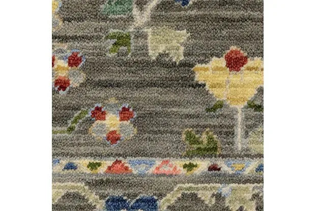 The rug showcases an exceptional Persian floral design with curvaceous leaves, bright blossoms, and other classic botanical motifs, bringing vivid energy to your living space.