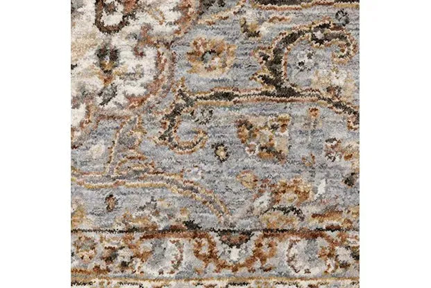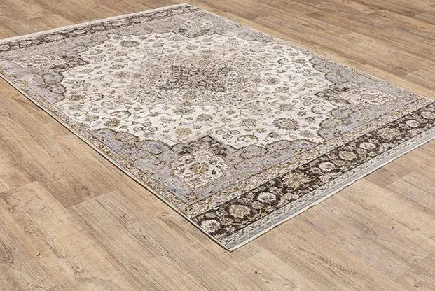 Maharaja is a study in understated elegance. This new million point collection is full of sophisticated traditional designs that have been re-imagined into a lovely new color palette. Timeless neutral tones alongside mellow shades of bluestone and muted amber offer subtle treatments for intricately detailed patterns. These beautiful rugs are powerloomed of incredibly soft, space-dyed polyester.