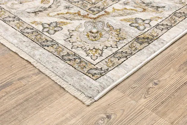 Maharaja is a study in understated elegance. This new million point collection is full of sophisticated traditional designs that have been re-imagined into a lovely new color palette. Timeless neutral tones alongside mellow shades of bluestone and muted amber offer subtle treatments for intricately detailed patterns. These beautiful rugs are powerloomed of incredibly soft, space-dyed polyester.