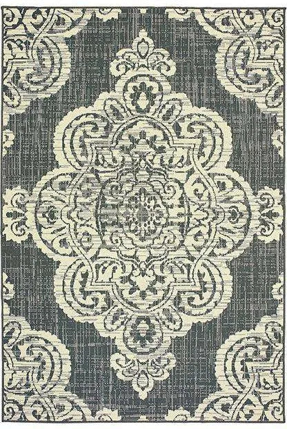 Marina is an elegant new introduction for indoor or outdoor use and features a 100% polypropylene looped yarn made in Egypt. It features a classic neutral palette using high contrast colors like black, ivory, deep navy, sand and cool gray. The collection includes casual but sophisticated patterns like updated geometrics and simplified traditionals that all feel fresh but timeless.
