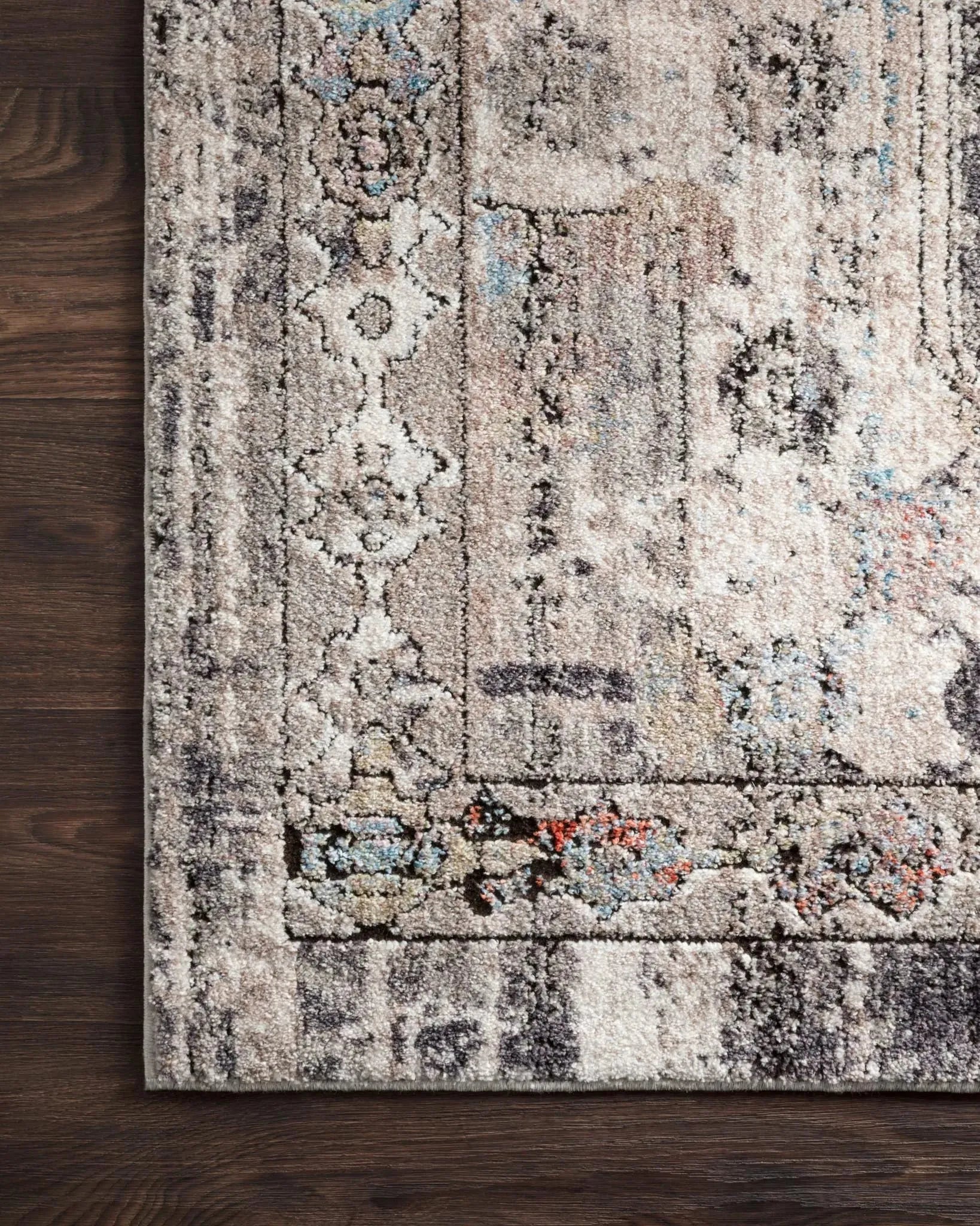 The Parisa PSA06 Denim/Multi Rug comes in various sizes, including 2x10, 5x7, 8x10, 8x11, 9x13, and 12x15 feet, accommodating different room dimensions.