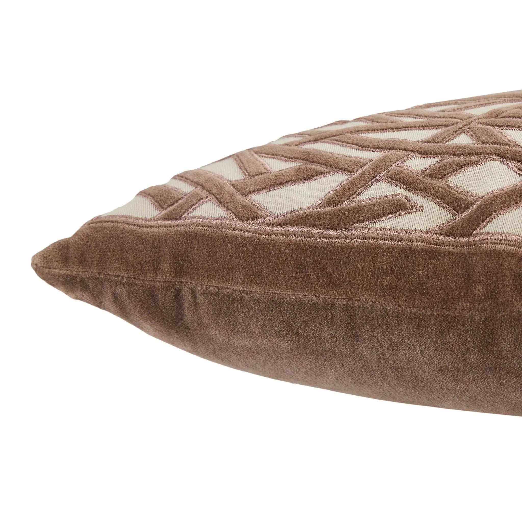 Sleek and soft details combine in effortless sophistication to form the transitional Mezza pillow collection. The Birch throw pillow boasts luxe, stone-washed cotton velvet with a detailed linear applique design. The brown and cream colorway complements any bedroom or living space decor.