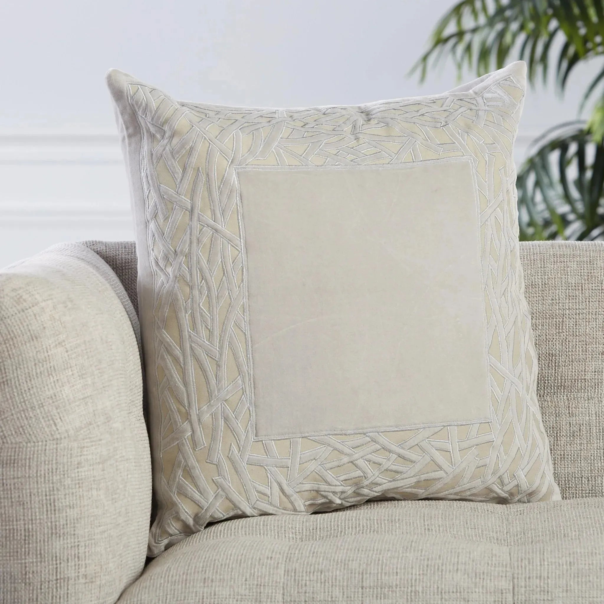 Sleek and soft details combine in effortless sophistication to form the transitional Mezza pillow collection. The Birch throw pillow boasts luxe, stone-washed cotton velvet with a detailed linear applique design. The silver gray and cream colorway complements any bedroom or living space decor.