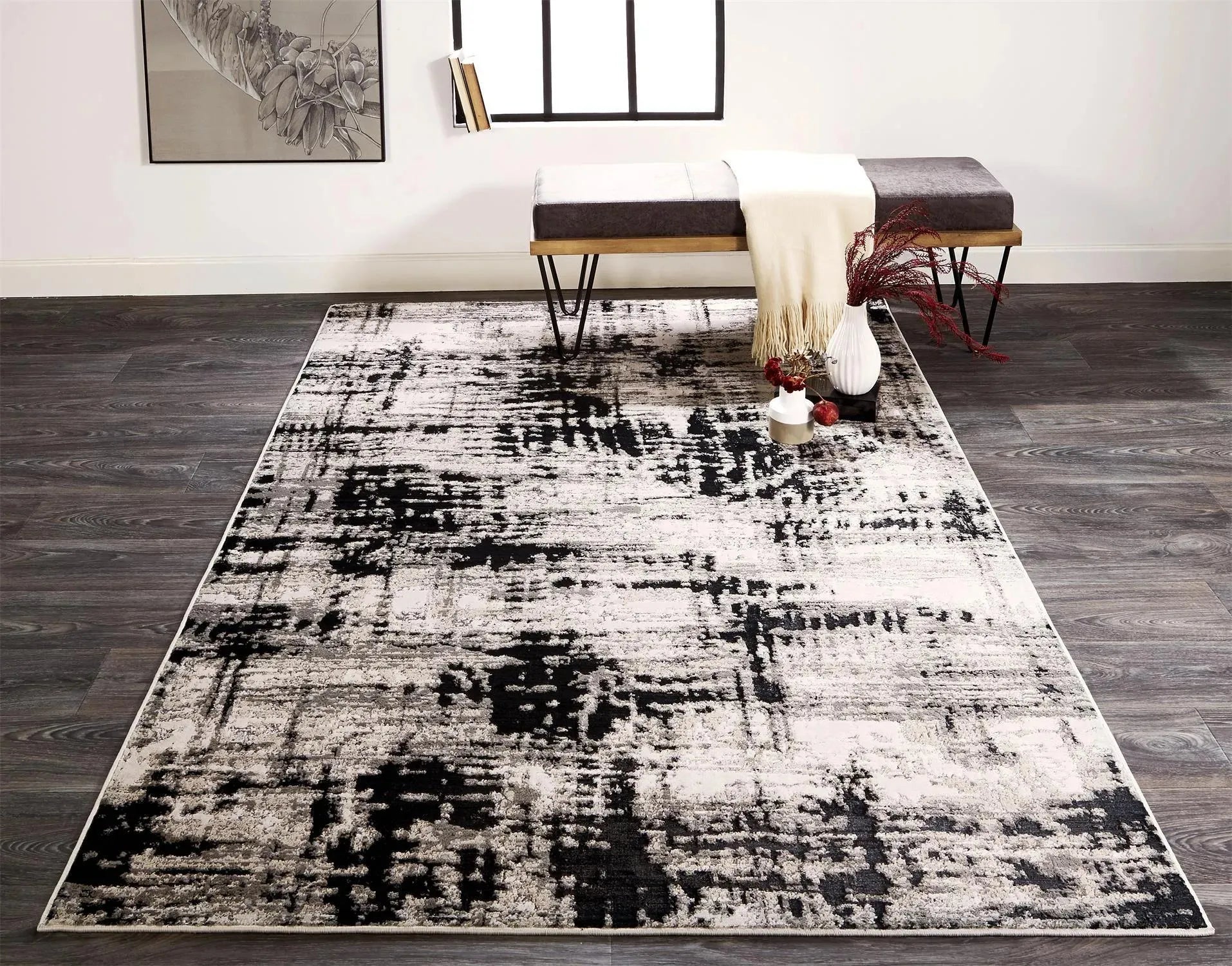 The Micah Collection is woven with high-grade shrink polyester fibers adding a subtle depth to the super-soft polypropylene and metallic polyester fibers. The result is stunning shimmering pieces with intricately detailed texture uncommon in power-loomed rugs. With a palette of ecru hues of gray silver and black the designs lend themselves to transitional and contemporary settings alike and are capable of withstanding high traffic areas. On-trend patterns dance across each pile as the light plays off the accents of metallic fibers strategically woven into each design.