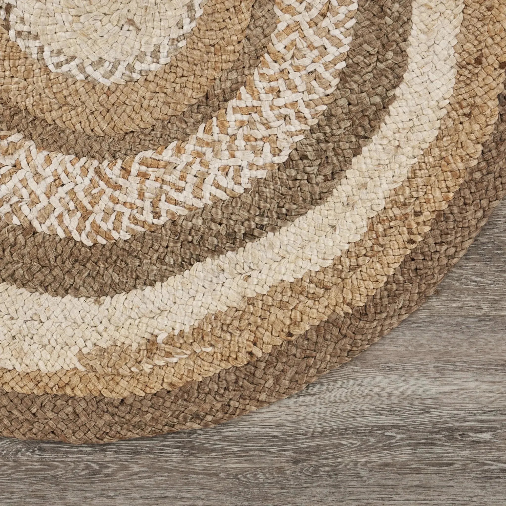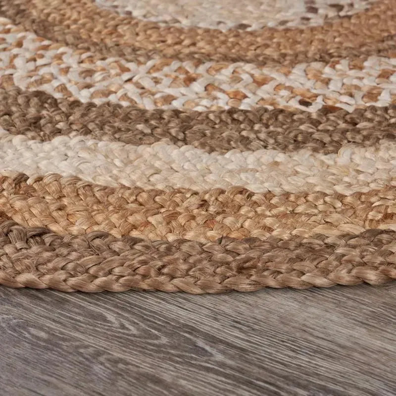 This piece will provide a wonderful enhancement to the natural tones and globally inspired pieces in your home or office. Combining natural and bleached toned jute, this hand-crafted rug is the ideal piece for a variety of spaces within your home. This multicolored balance is highlighted perfectly in the spiral central design of this round rug. Easily add this to an eclectic, cottage, or farmhouse home or be trendy and hang this piece on the wall! All jute rugs are handmade and may have slight variations in sizes due to the intricate work that goes into their creation. Bring it home today for a spectacular new addition to your space!