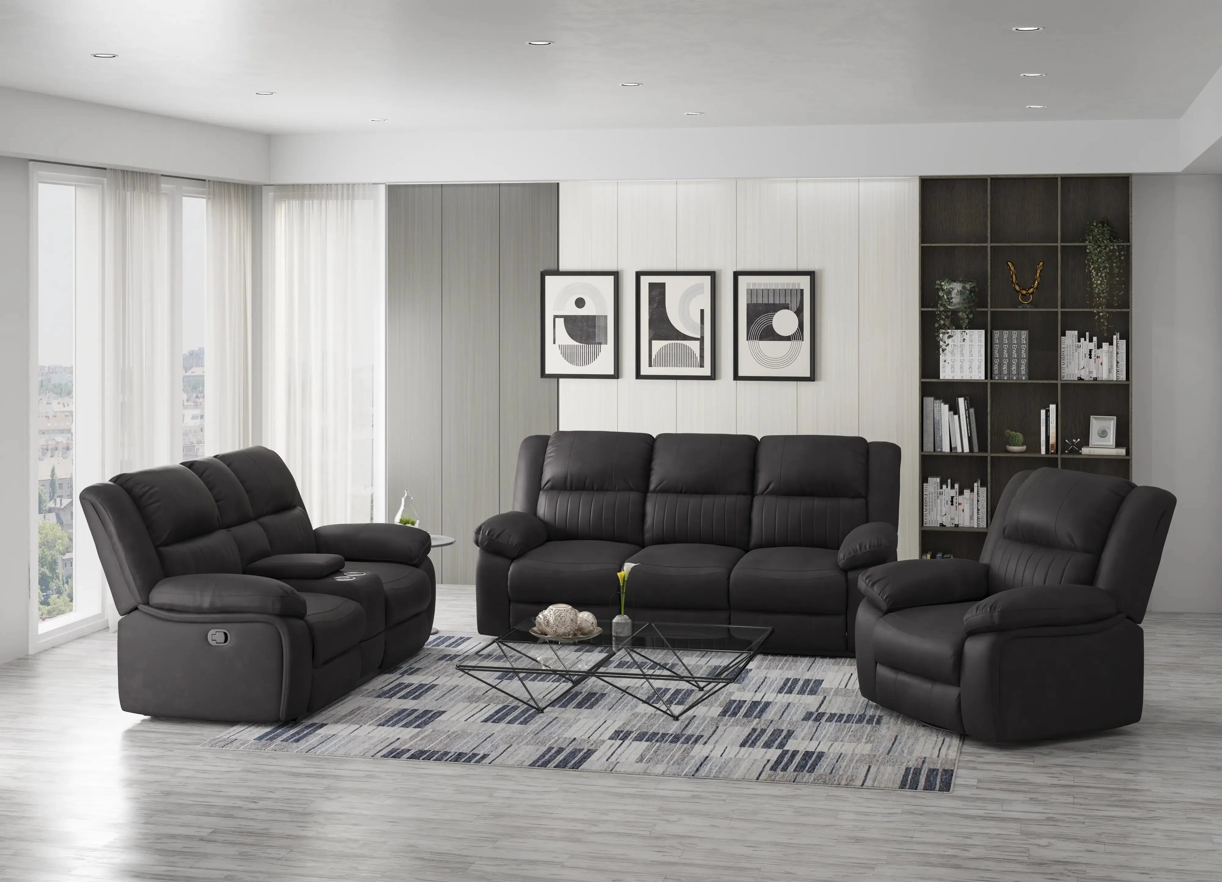 The Navaro motion collection offers comfort and ease in a sophisticated and contemporary style. The pull of a lever reclines your seat for unwinding after a long day or kicking back to watch a movie. A beautiful soft black microsuede with topstitching detail draws you in to the most comfortable seat in your house. Maintain a stylish appearance without sacrificing comfort with Navaro.